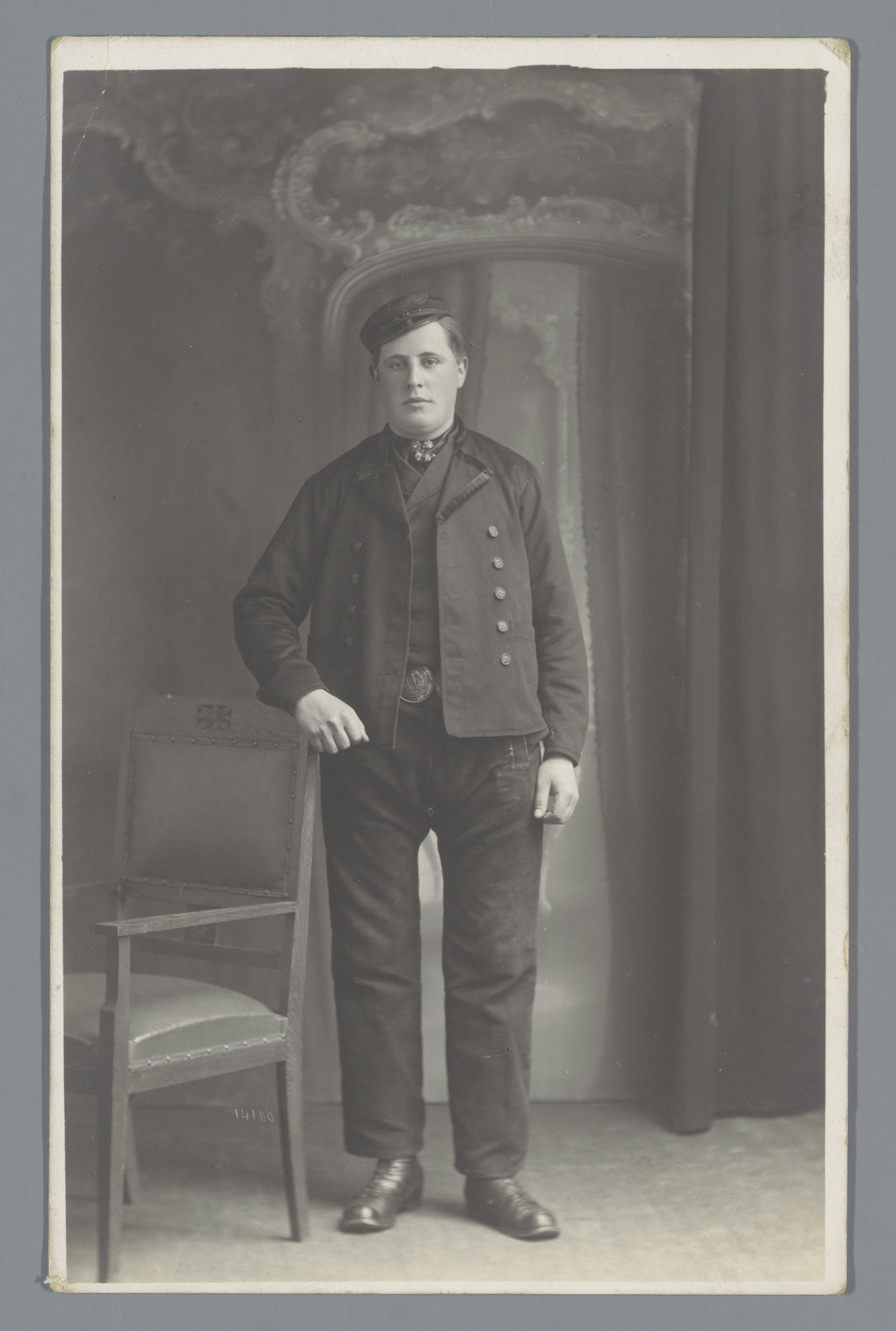 Studioportret van een onbekende man in de klederdrac...