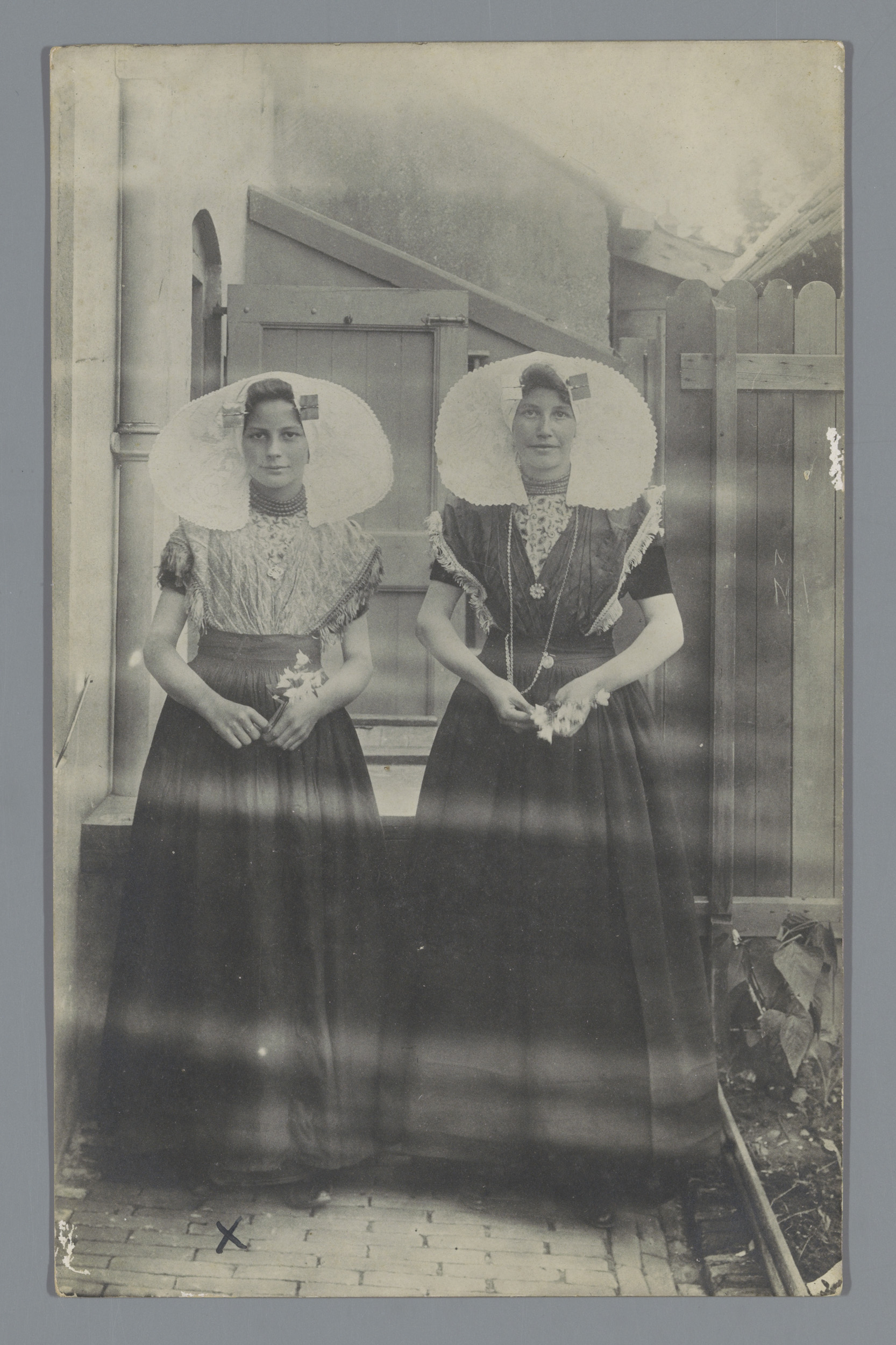 Portret van twee onbekende vrouwen in klederdracht v...