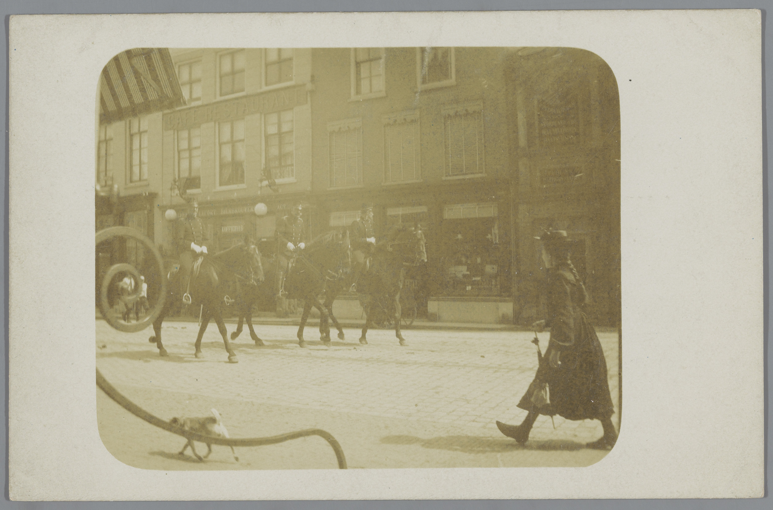Drie agenten te paard op straat