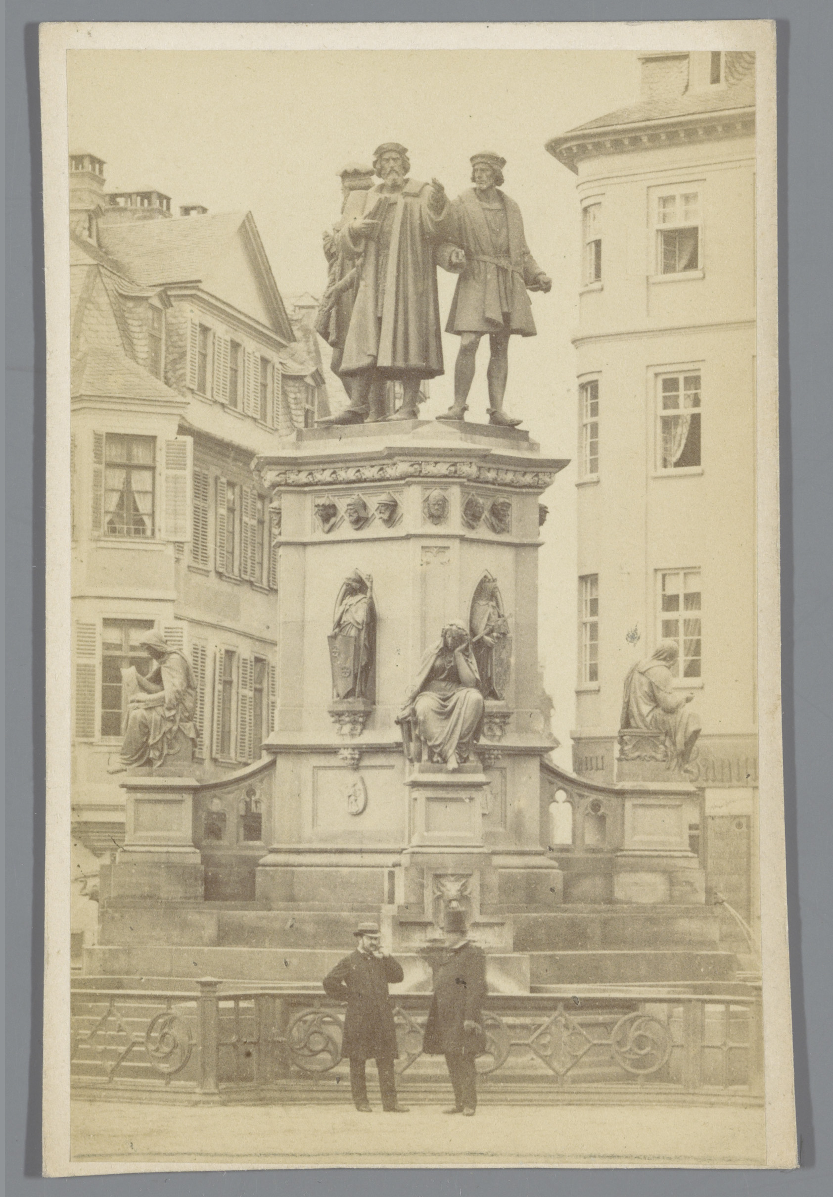 Monument voor Gutenberg met standbeelden van Gutenbe...