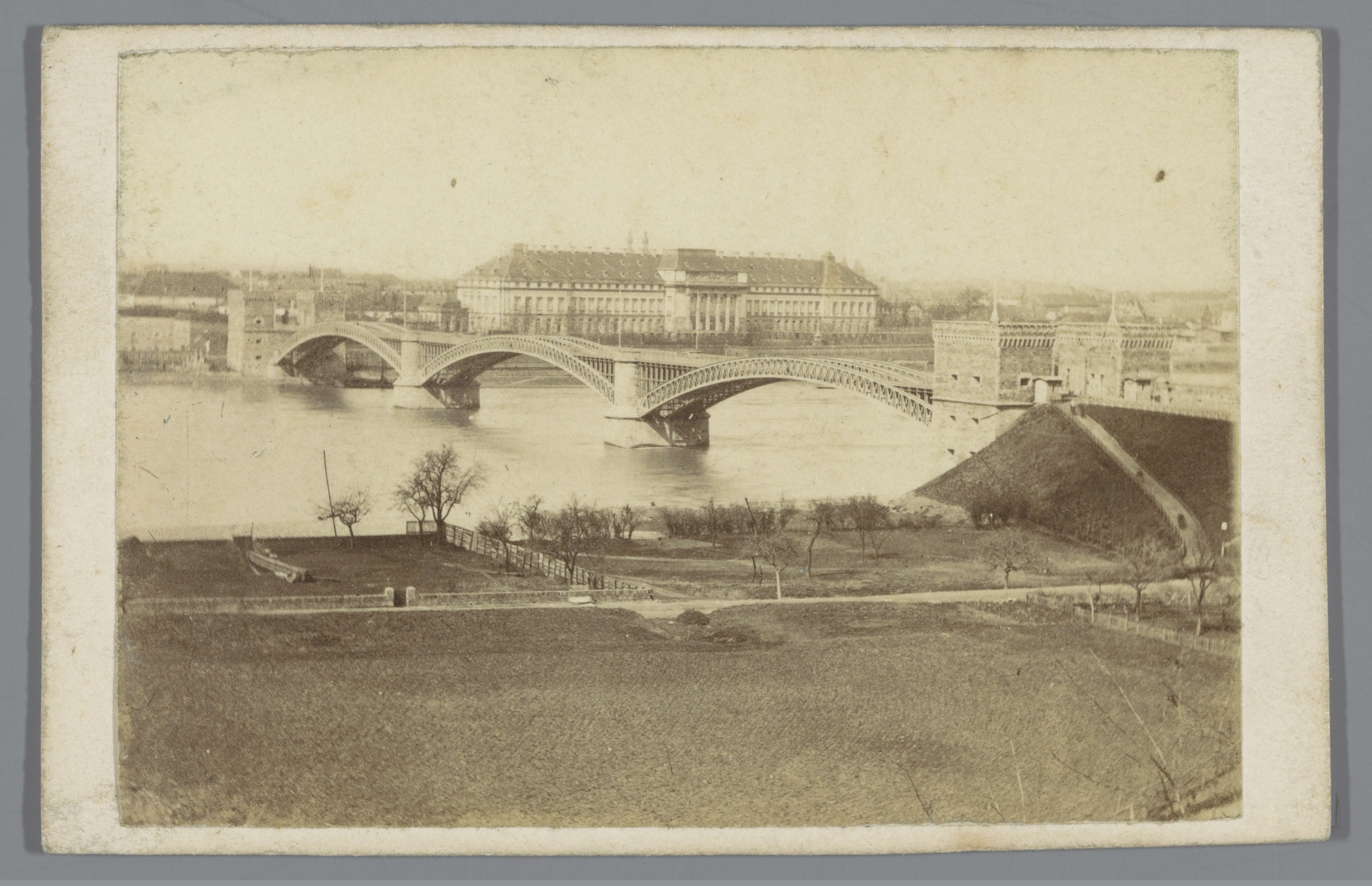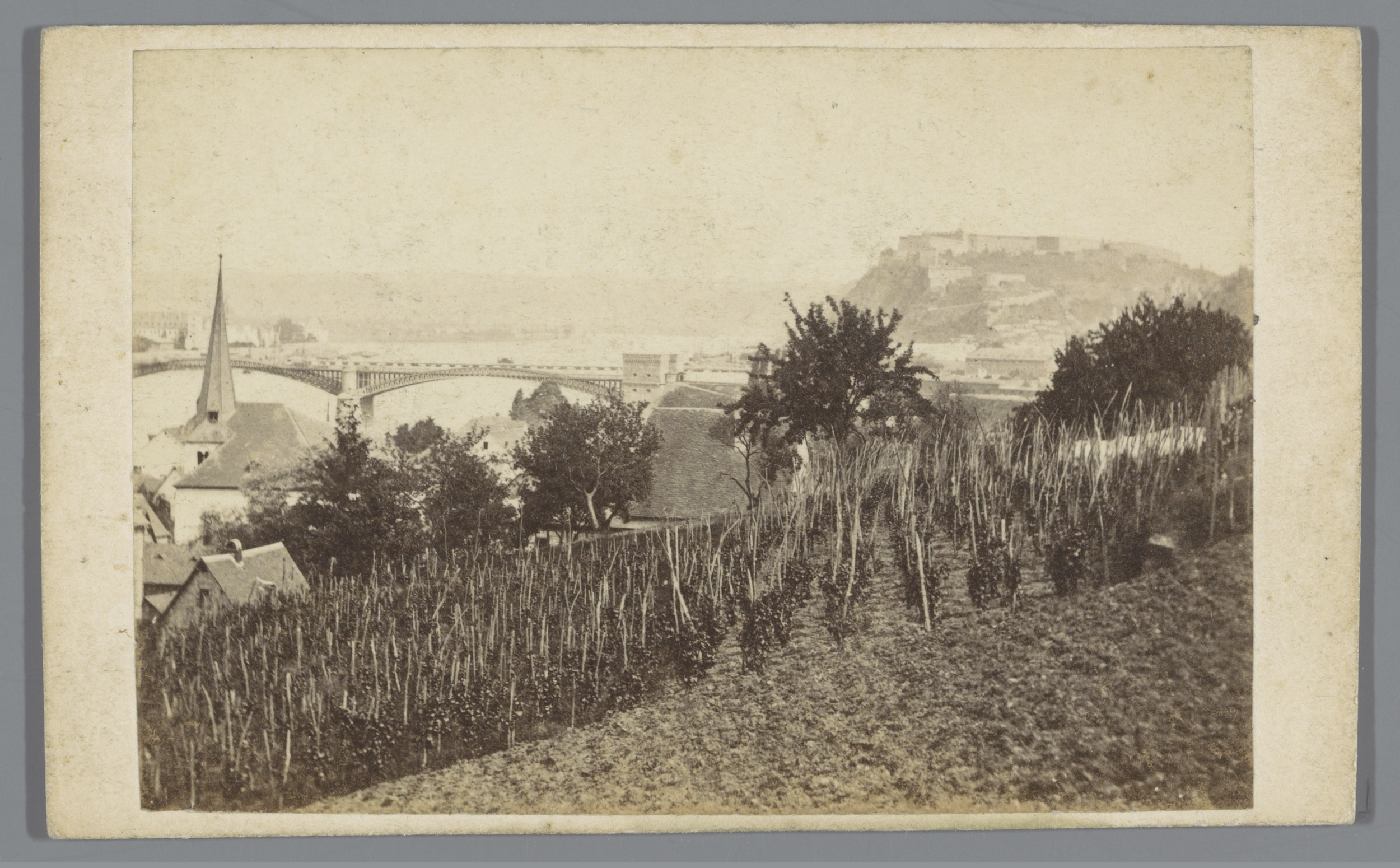 Gezicht op de nieuwe Rijnbrug en fort Ehrenbreistein...