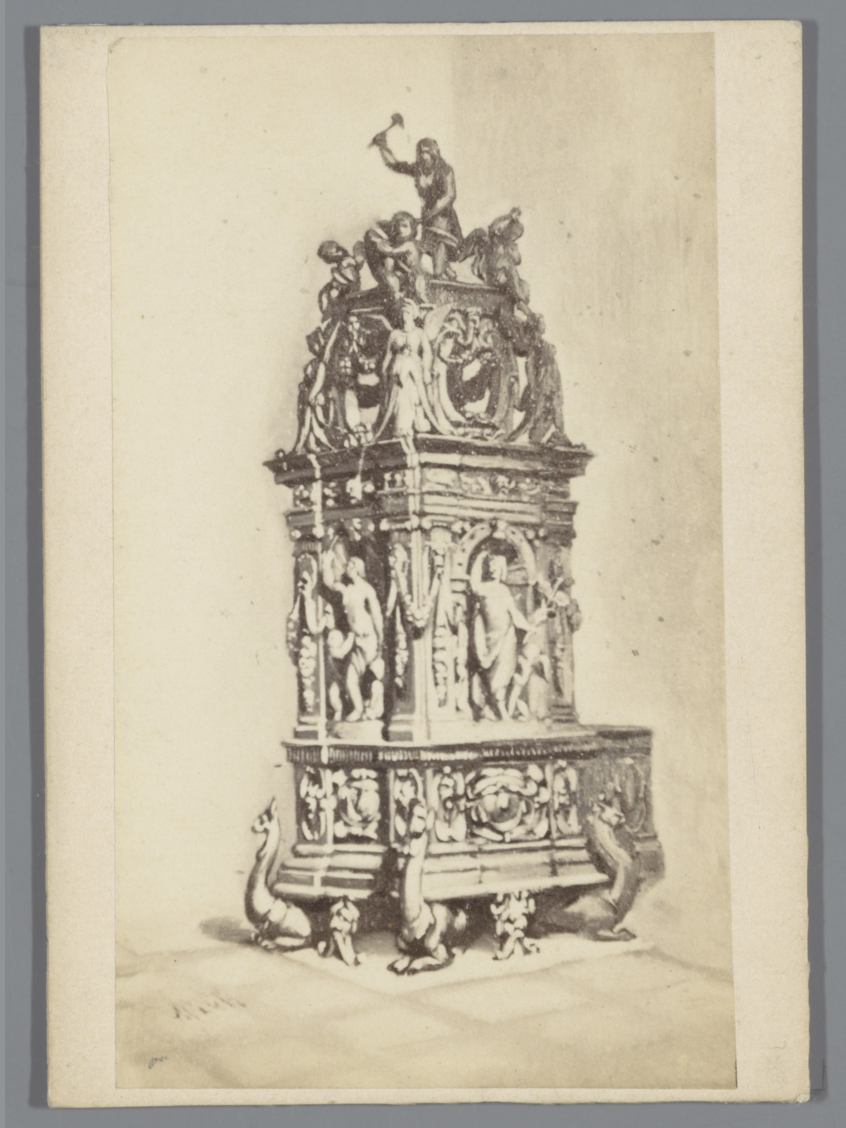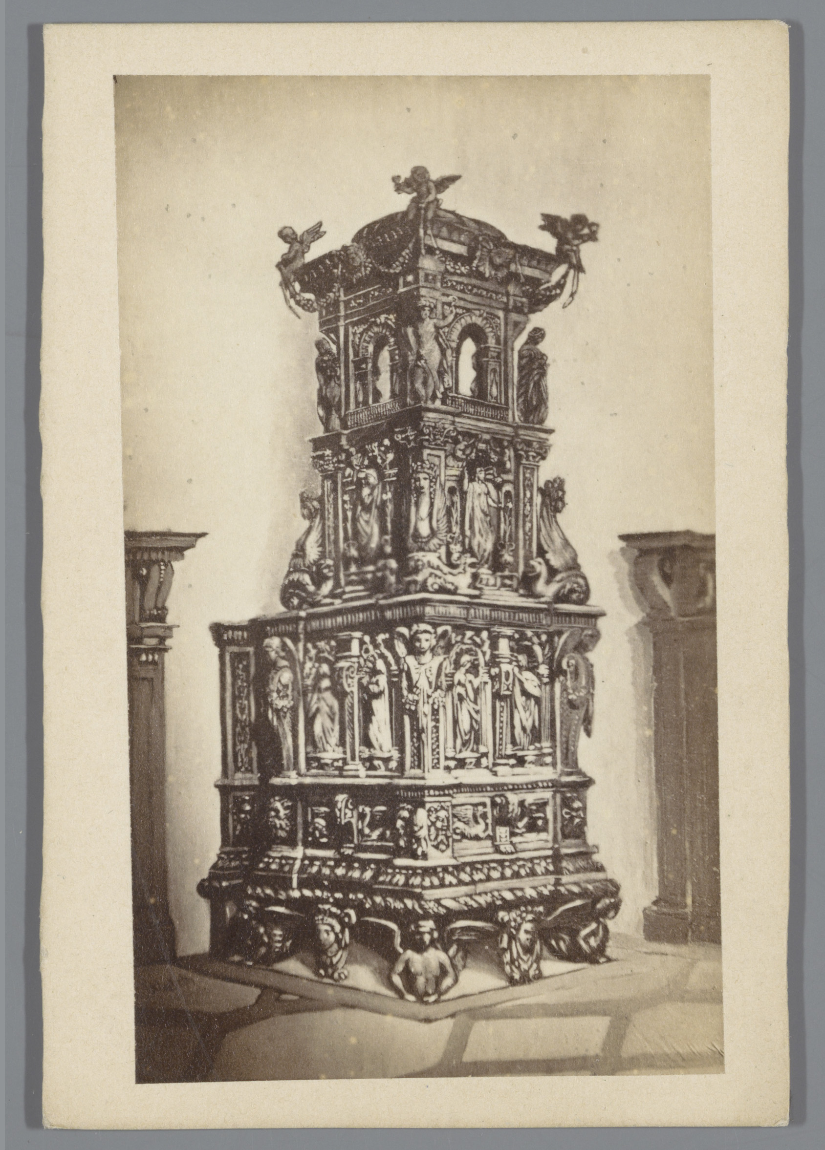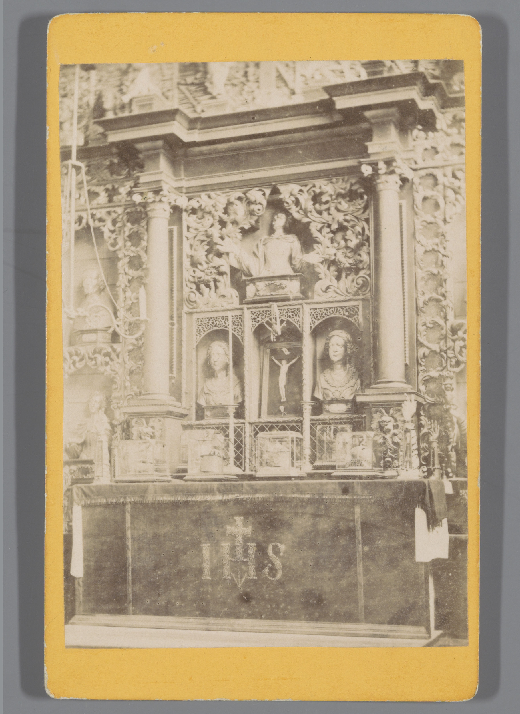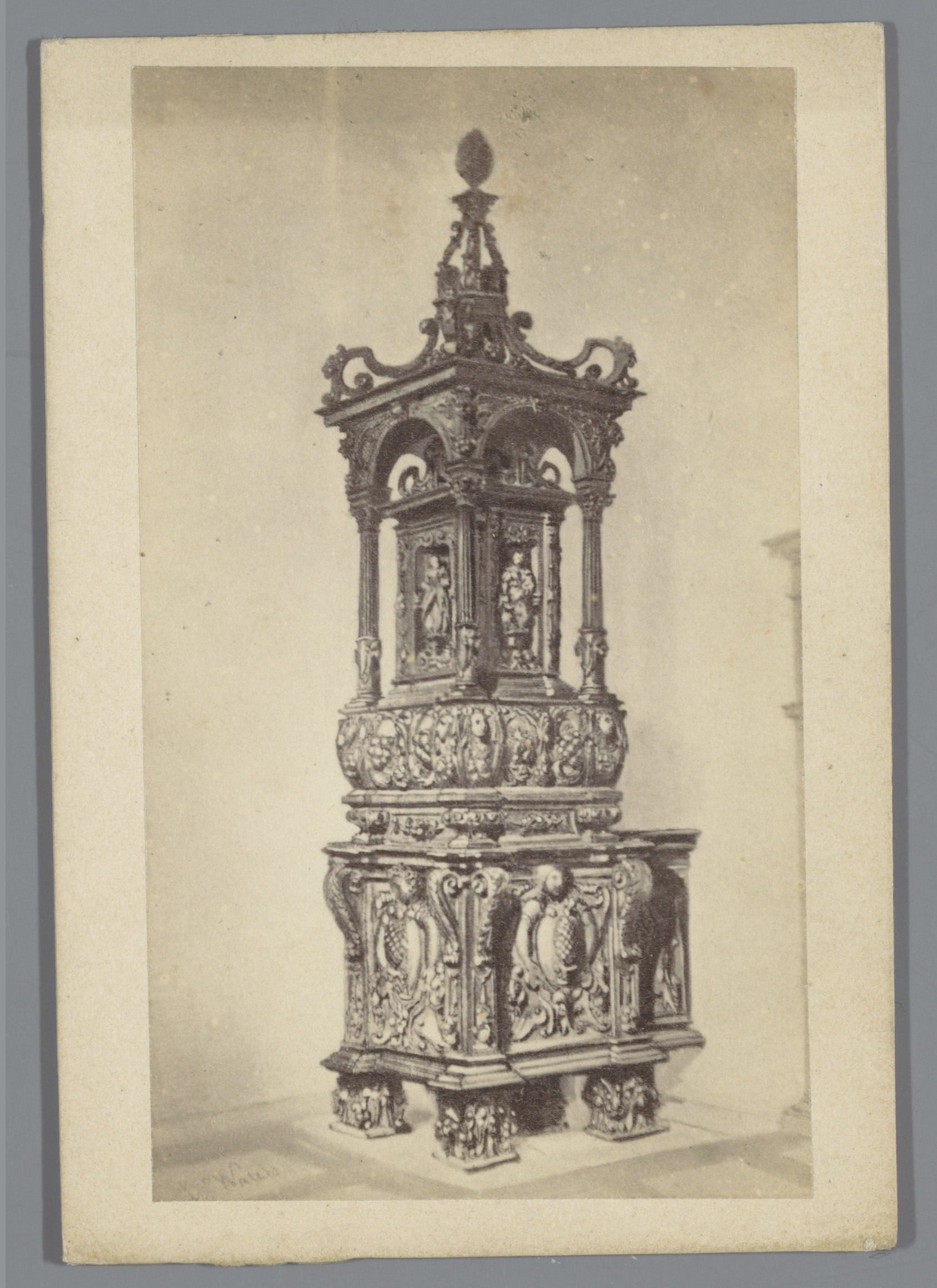 Fotoreproductie van een prent waarop een reliekhoude...