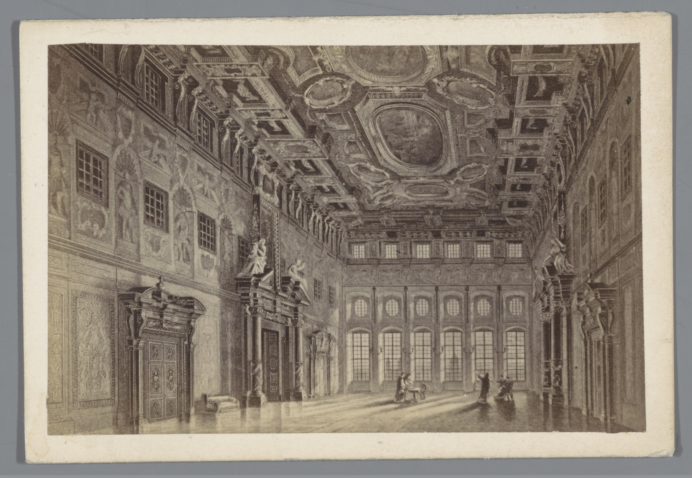 Fotoreproductie van een gravure van het interieur va...