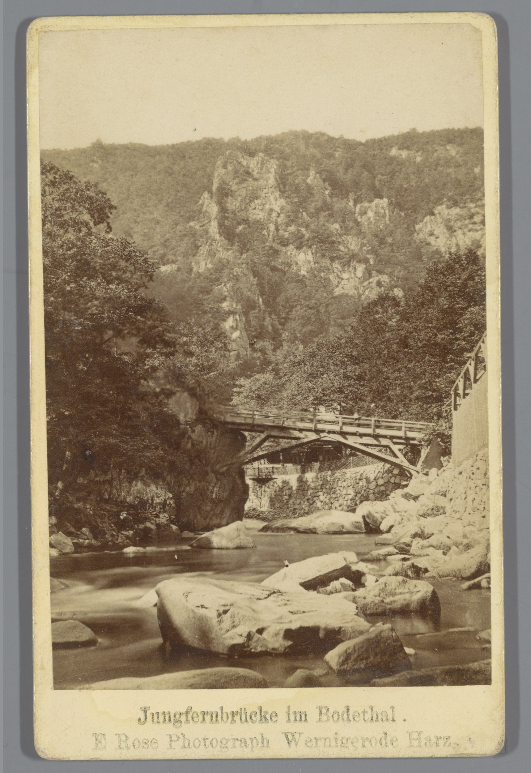 Gezicht op de Jungfernbrücke in Bodetal, Duitsland