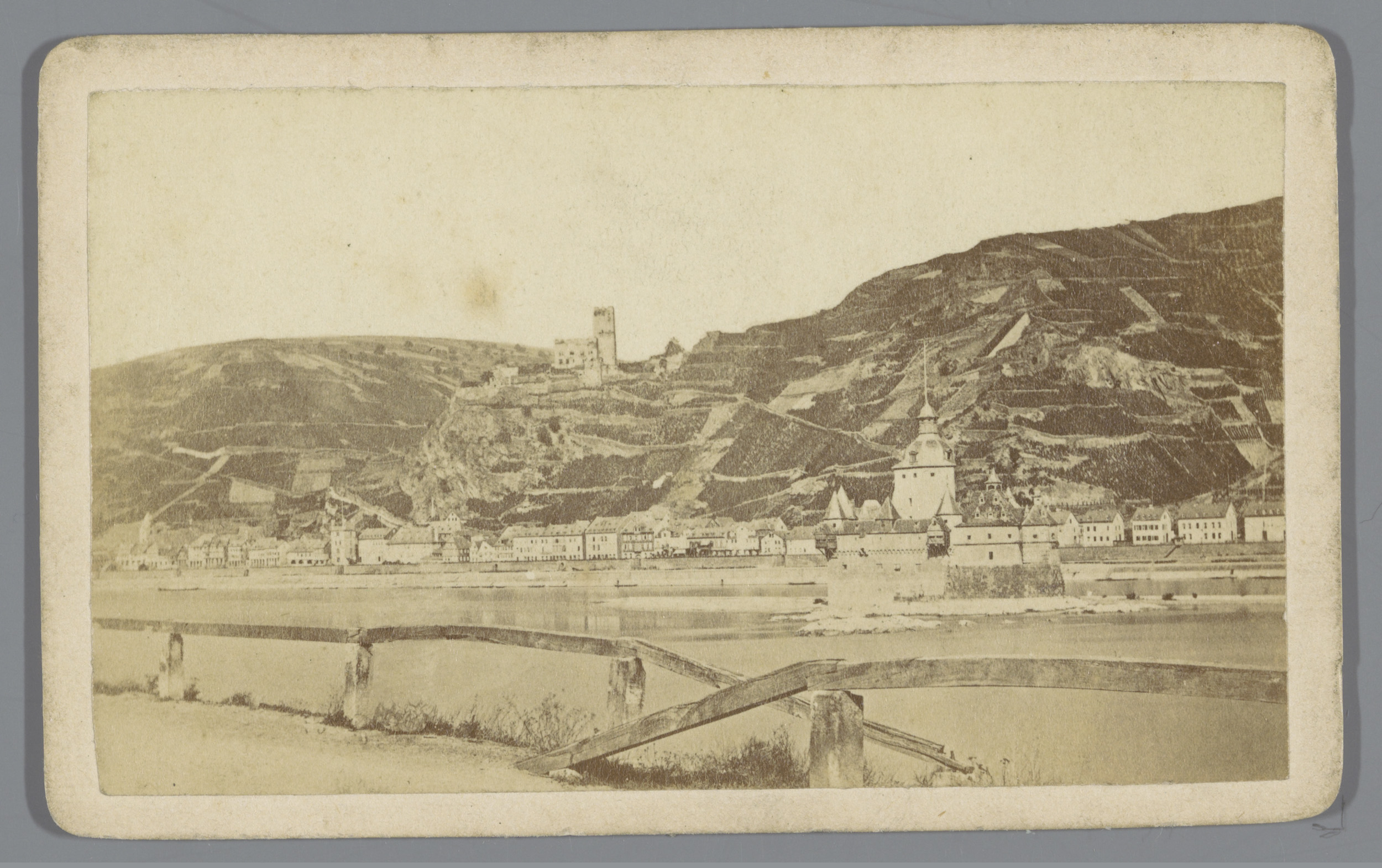 Gezicht op het dorp Kaub en de burchten van Gutenfel...
