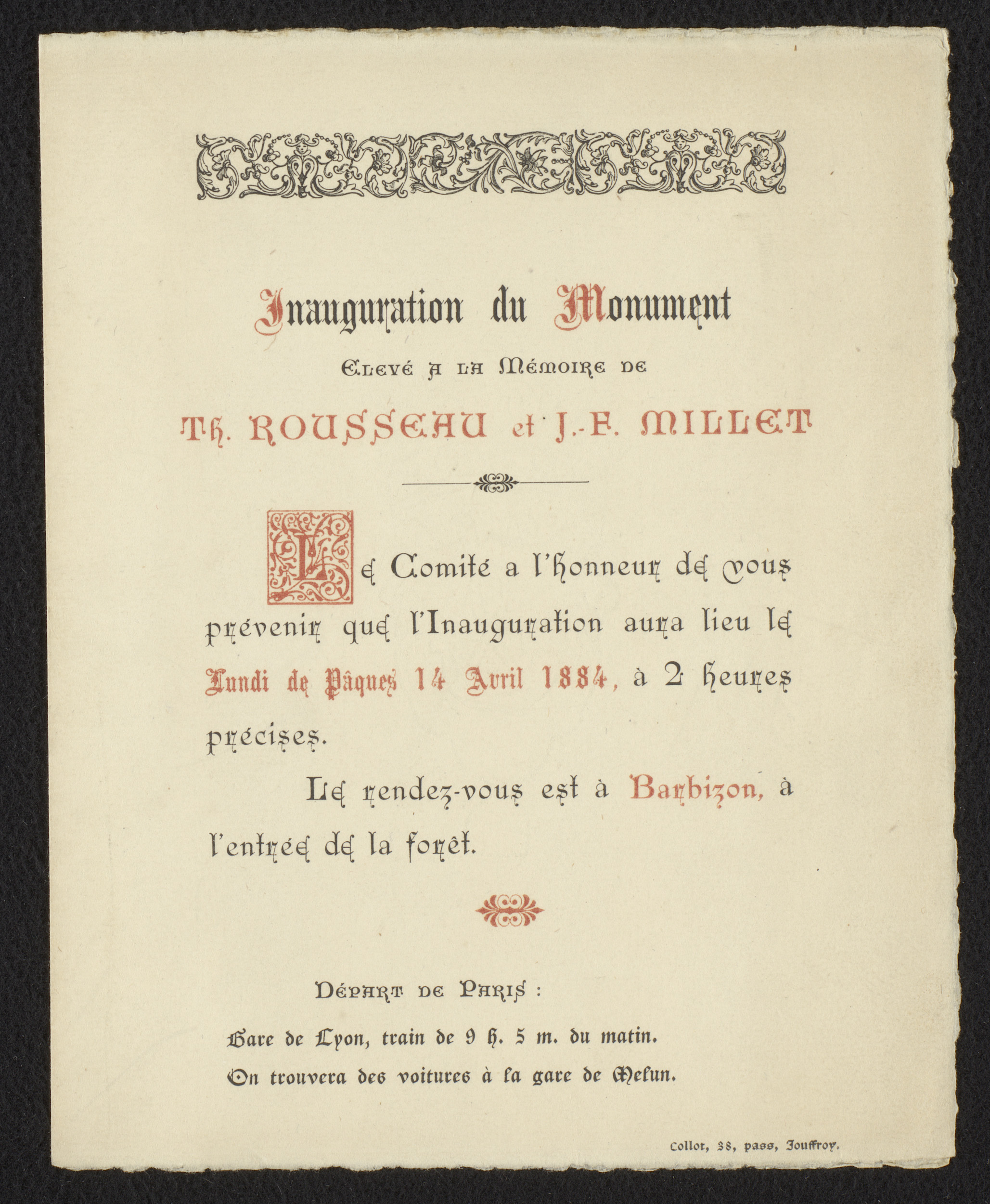 Uitnodiging voor de inauguratie van de stele ter ere...