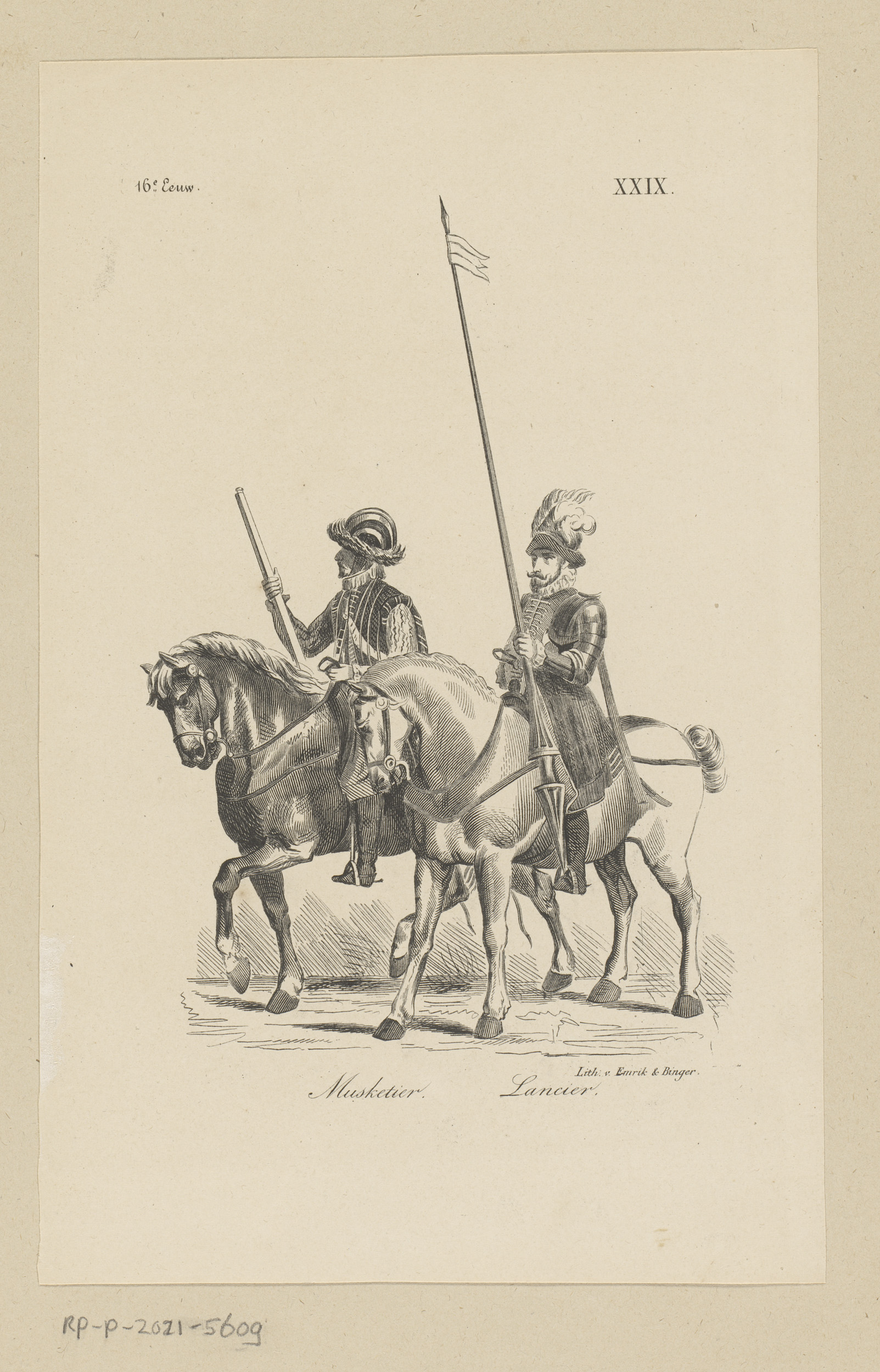 Musketier en lansier in kleding uit de zestiende eeuw