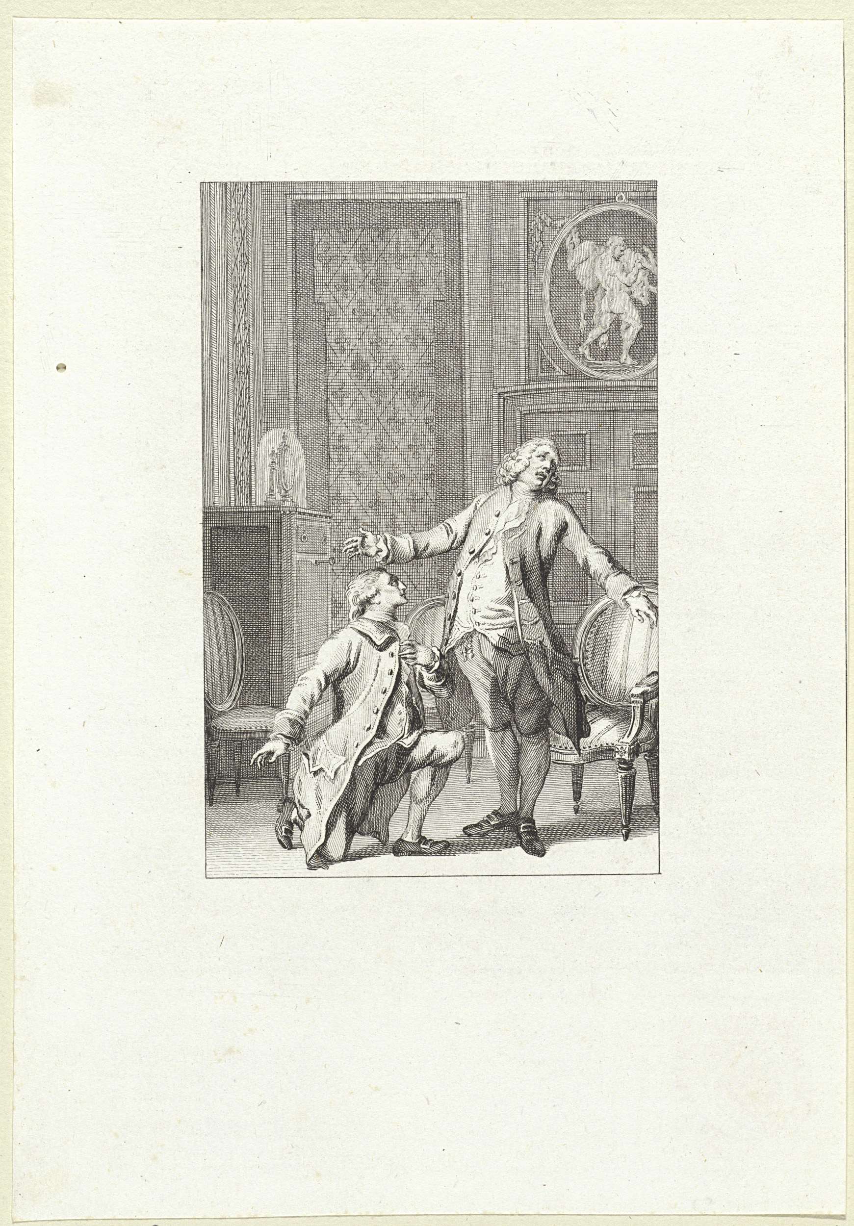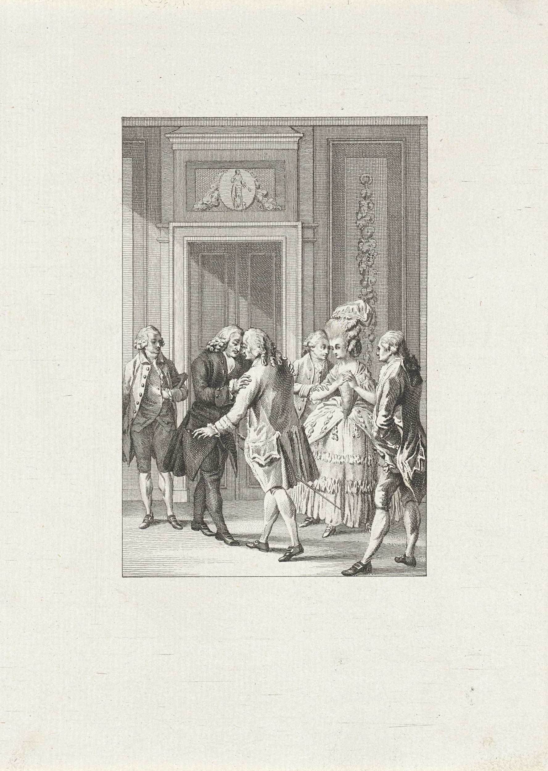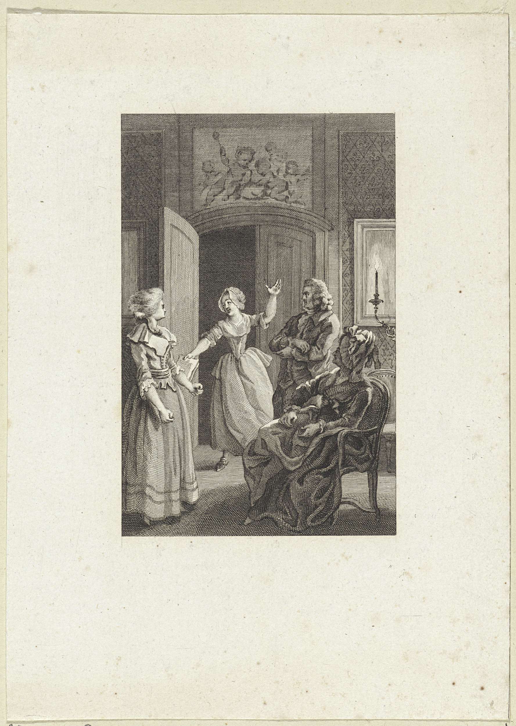 Vrouw toont een man een portret, mogelijk van Antoni...