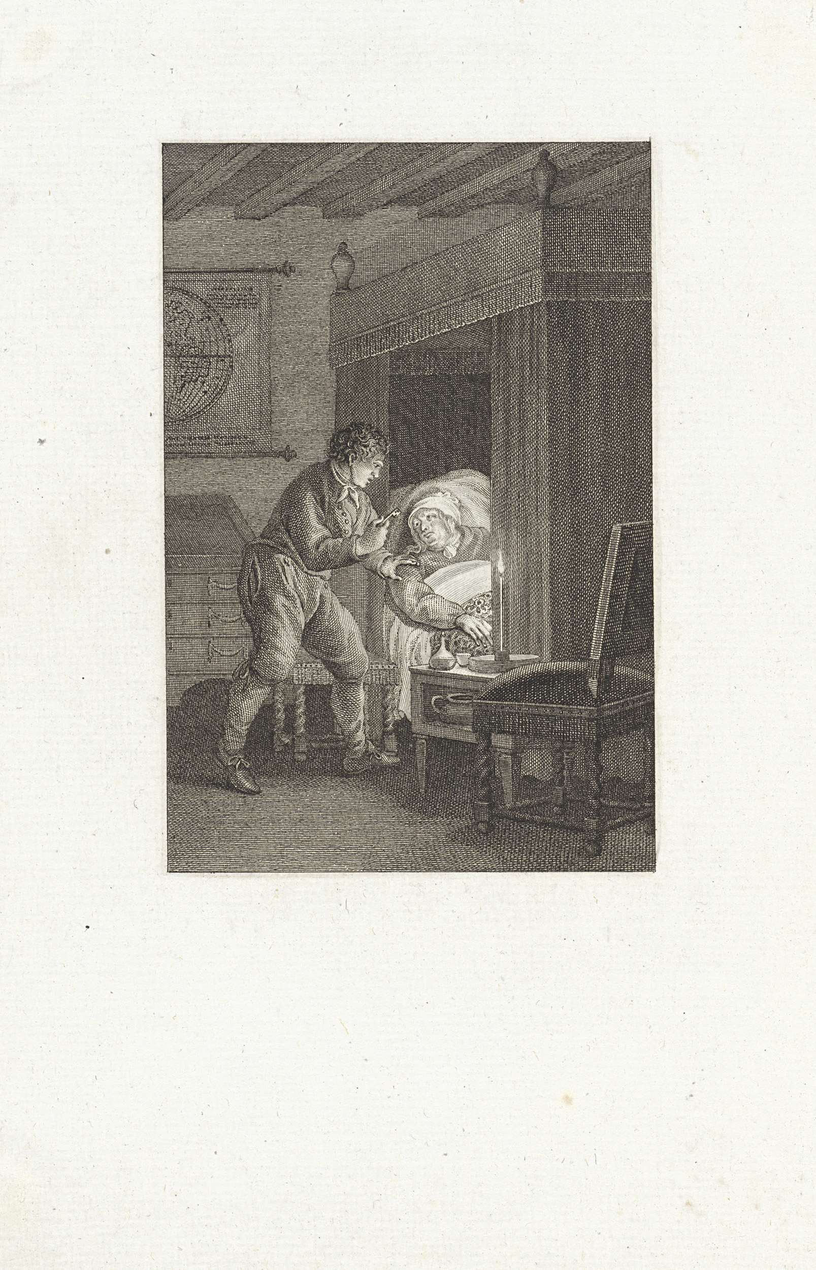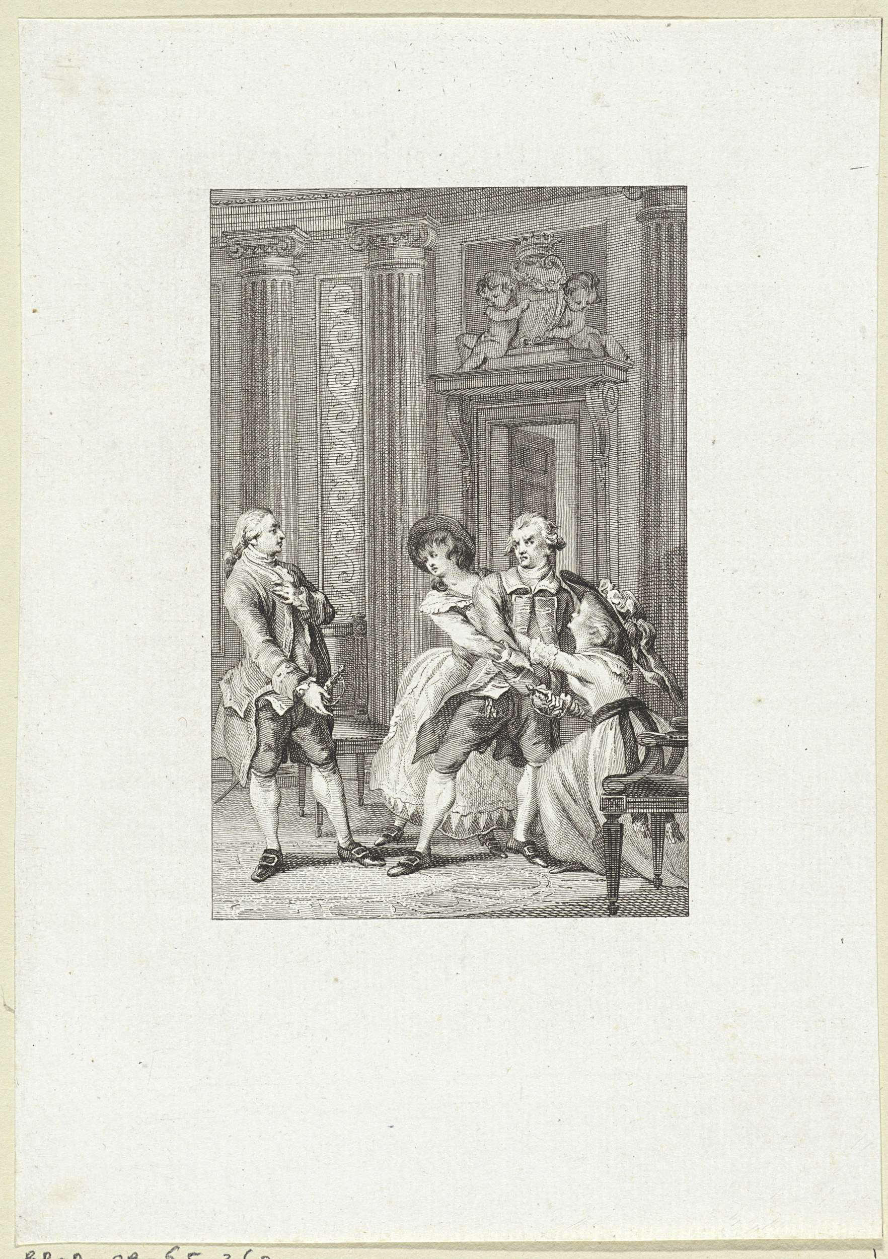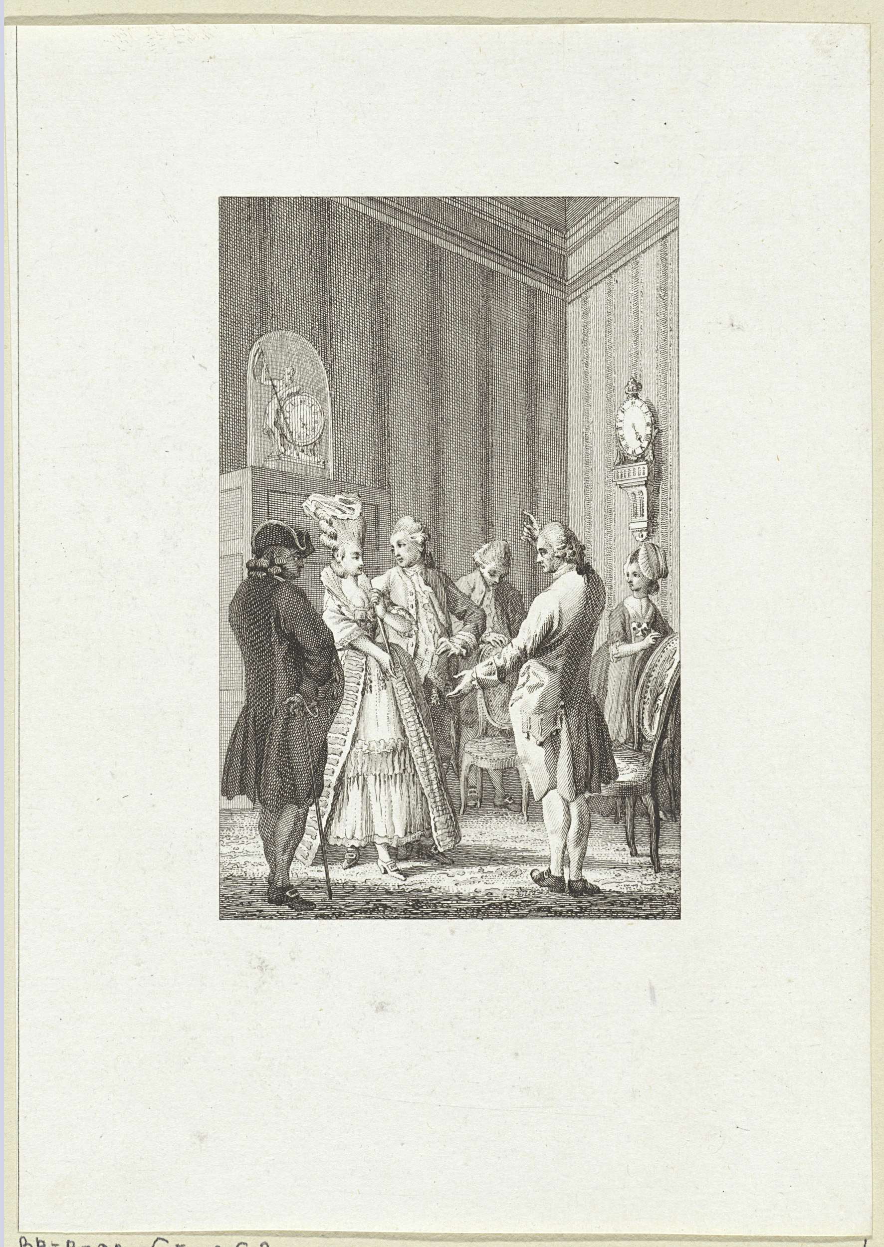 Vrouw toont een man een portret, mogelijk van Antoni...