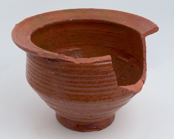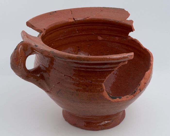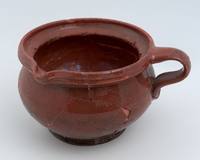 Aardewerk kamerpot, rode scherf, geglazuurd, één ver...