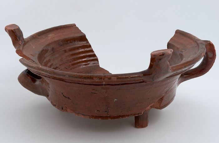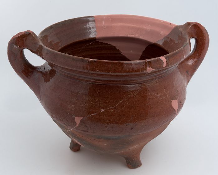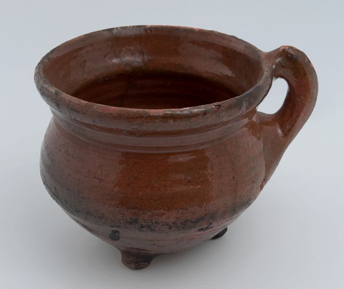 Aardewerk kookpot, grape-model, geglazuurd, twee hog...