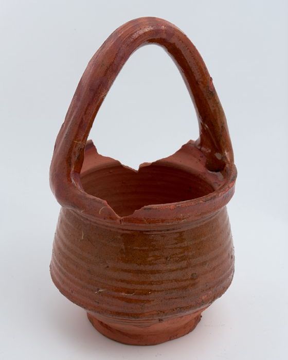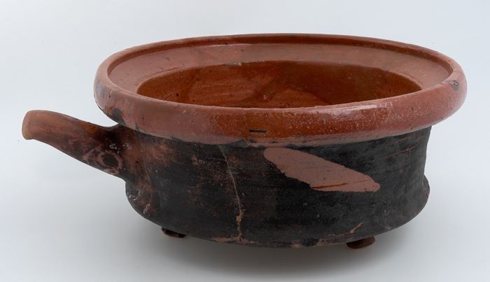 Aardewerk steelpan, kookpot, rode scherf, inwendig g...