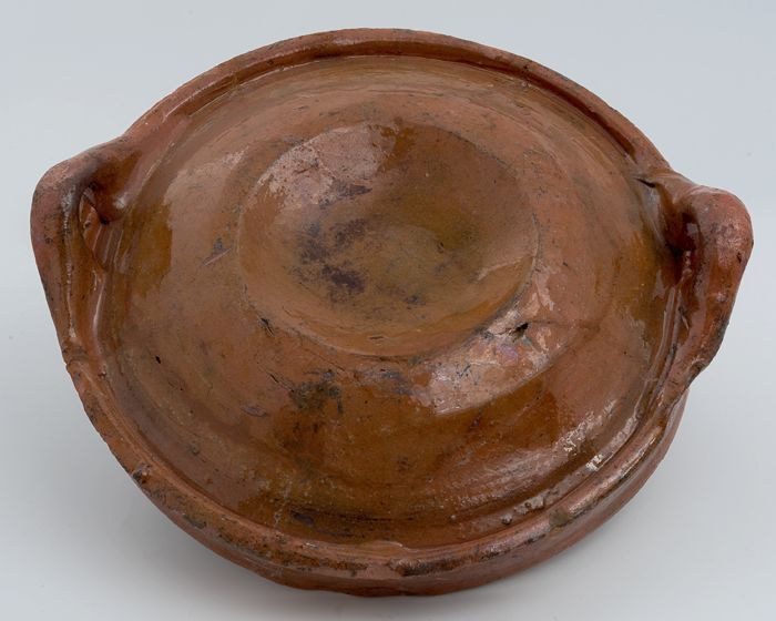 Aardewerk deksel, rode scherf, uitwendig geglazuurd,...