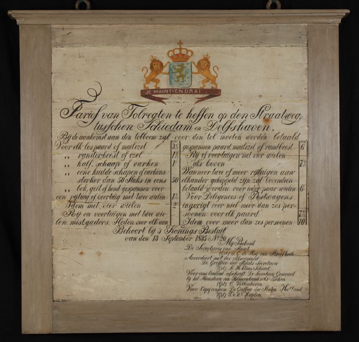 Beschilderd houten tolbord van tol bij molen 'de Gra...