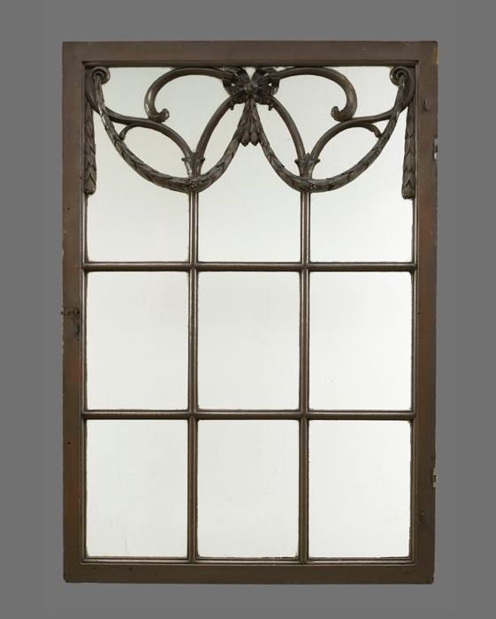 Beschilderd en gesneden houten venster met negen rui...