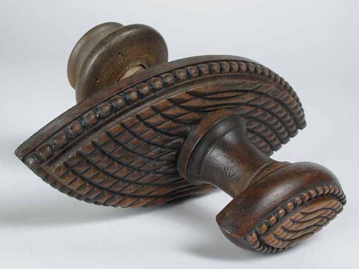 Notenhouten deurknop (houtsnijwerk), amandelvormige ...