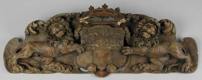 Gesneden stadswapen van Rotterdam, twee leeuwen die ...