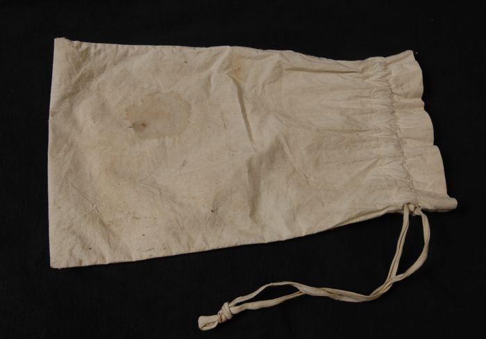 Stukje witte zeep, uit linnen zakje Rode Kruis met w...