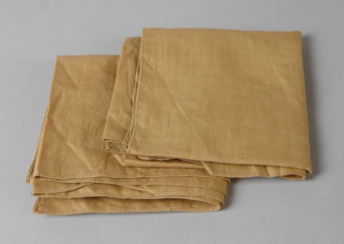 Twee zakdoeken, uit linnen zakje Rode Kruis met welk...
