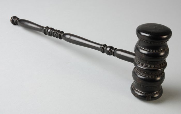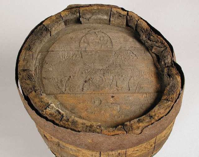 Houten profielschaaf, met doorboorde kop, met initia...