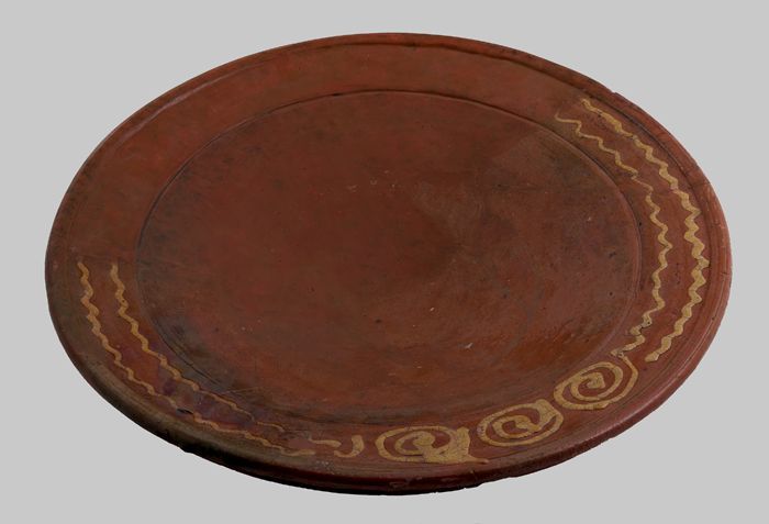 Aardewerk schotel, ringeloorbord, inwendig geglazuur...