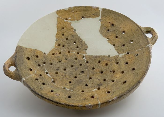 Fragment aardewerk komfoor, rode scherf, geheel gegl...