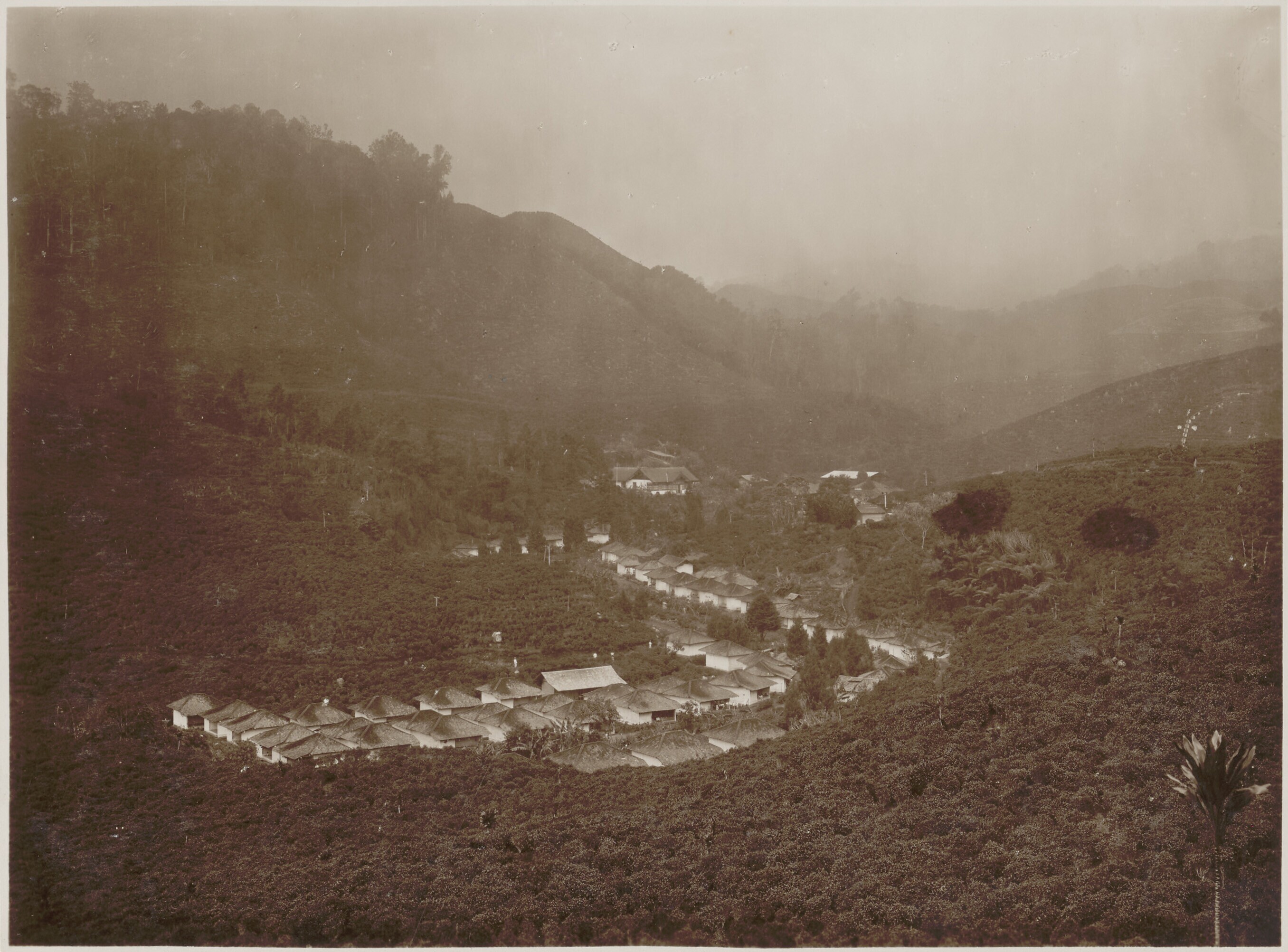 The Rantjasoeni tea plantation with the kampung in w...