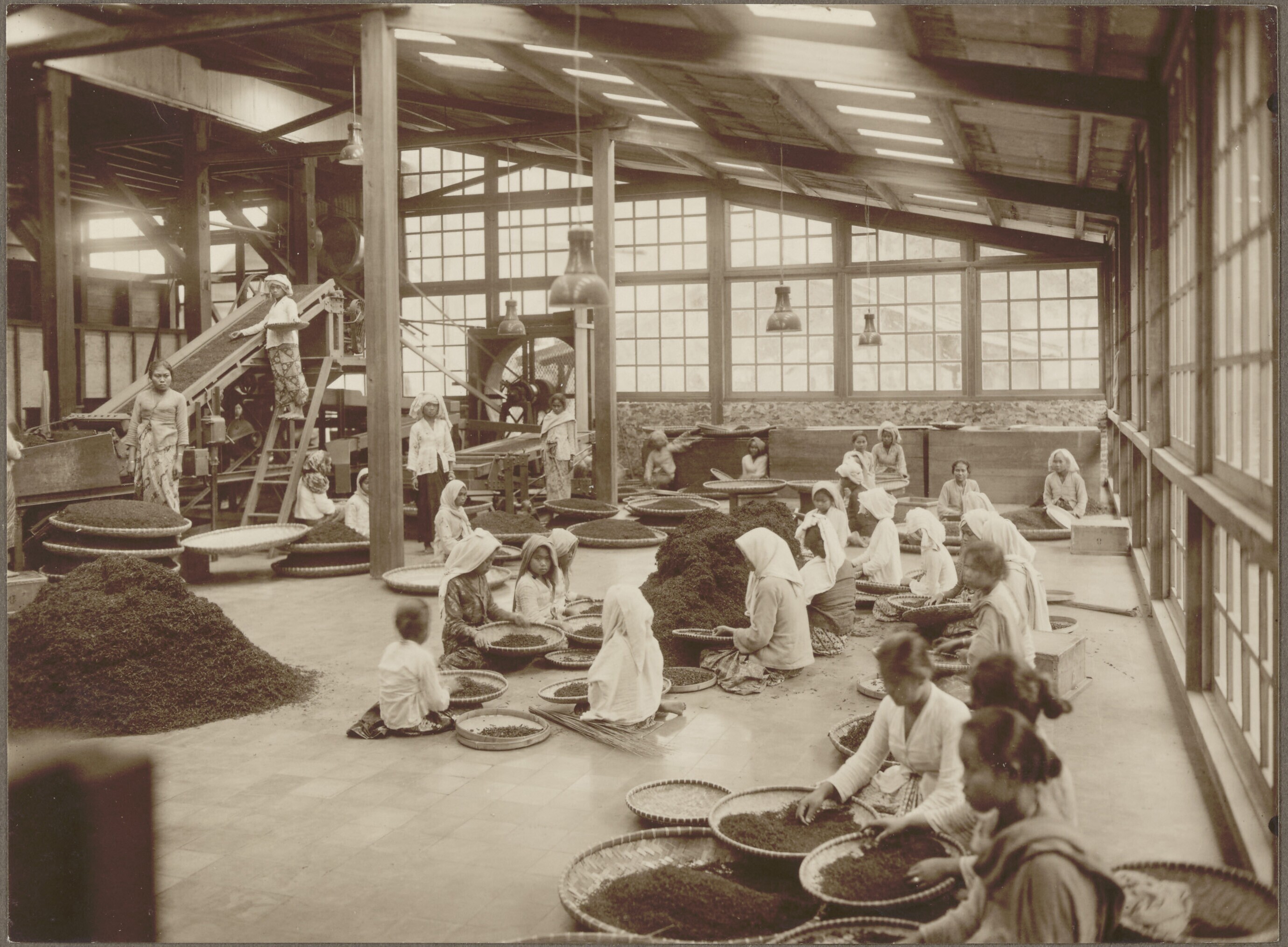 Women sorting tea in the factory of the Rantjasoeni ...