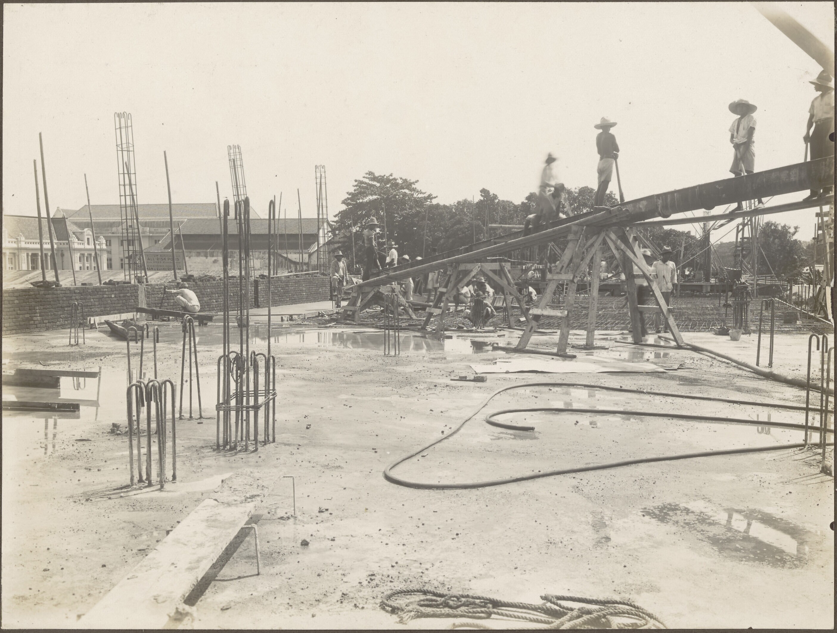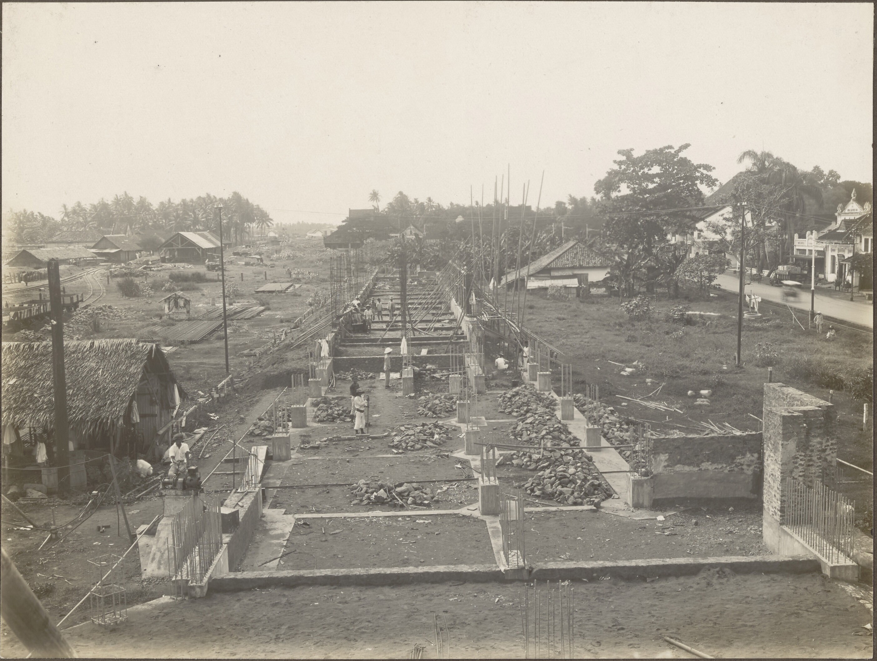 Het spoorwegstation Kota in aanbouw, Batavia