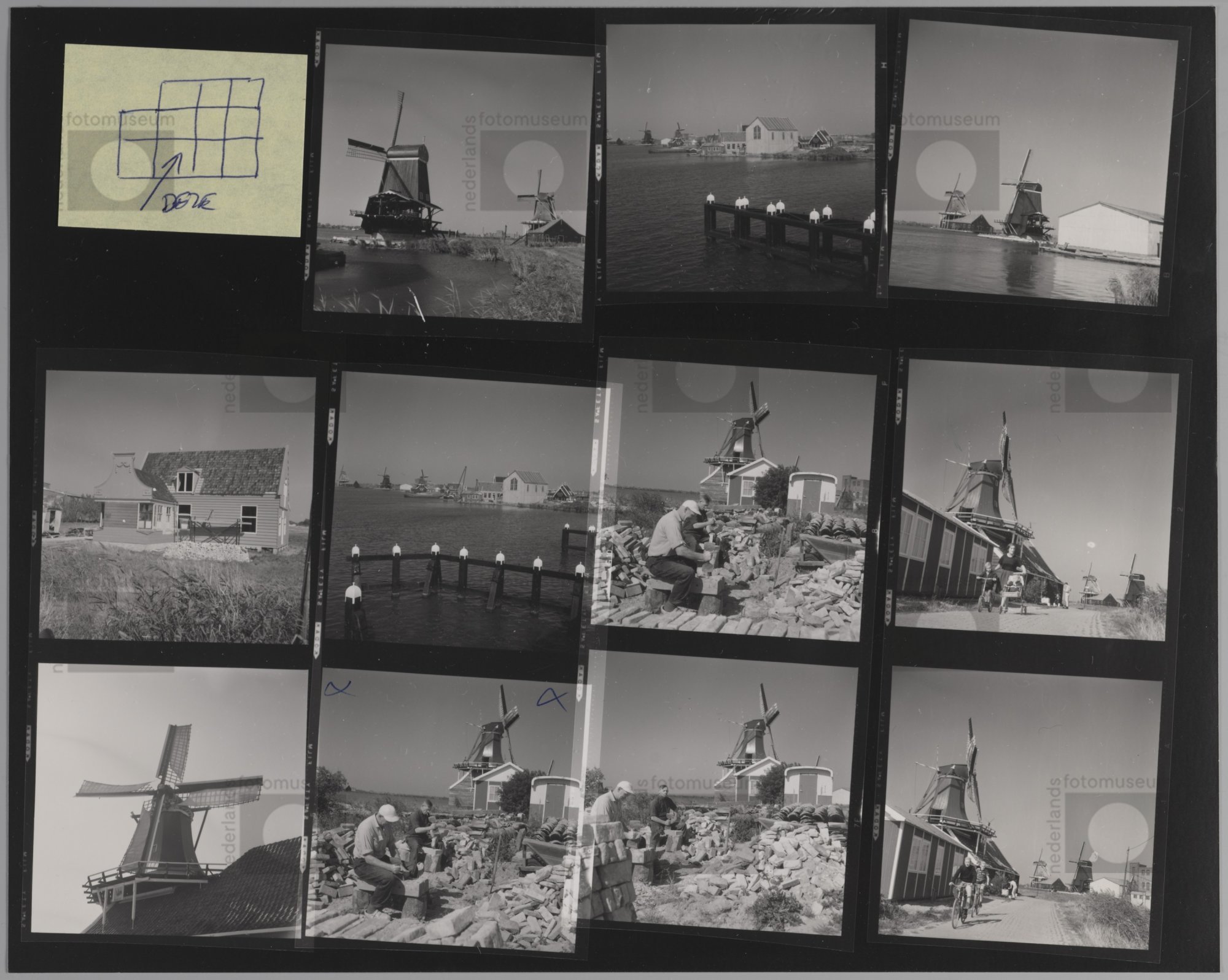 Zaanse Schans. Opbouw Zaanse Buurt met molens