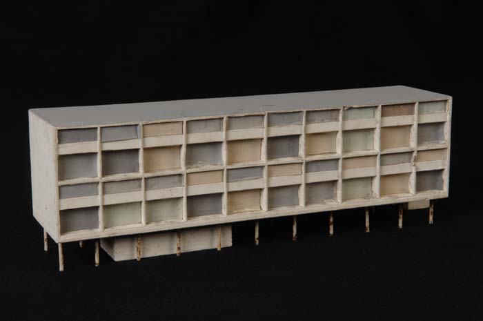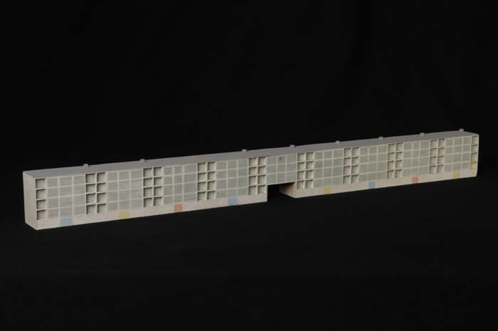 Maquette (1:200) van een galerijflat van twaalf verd...