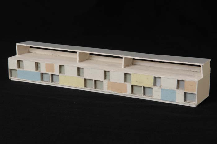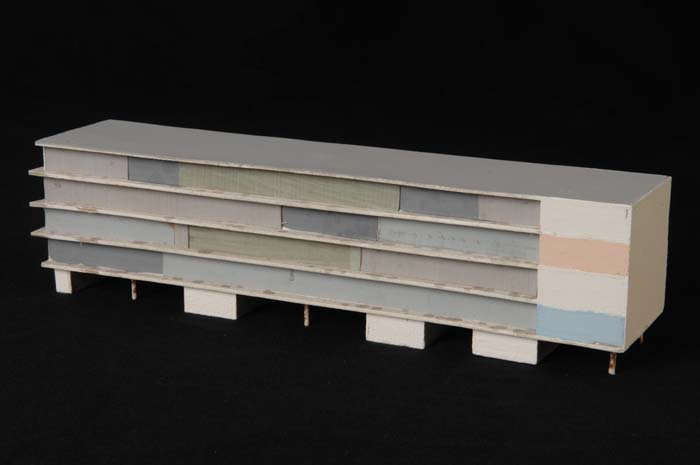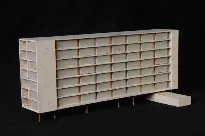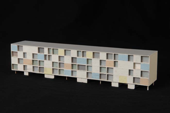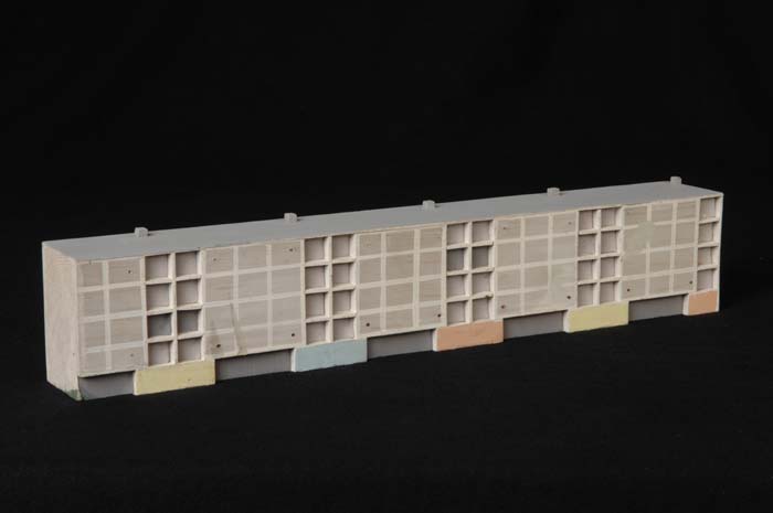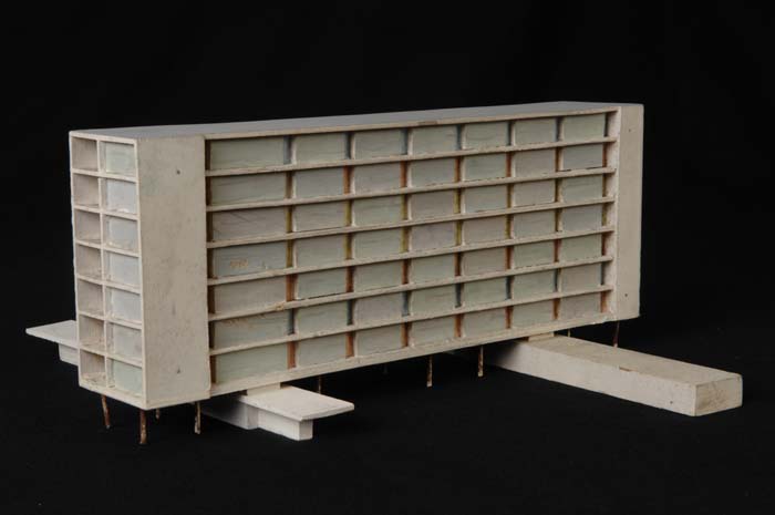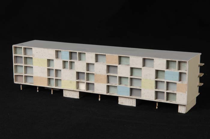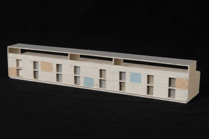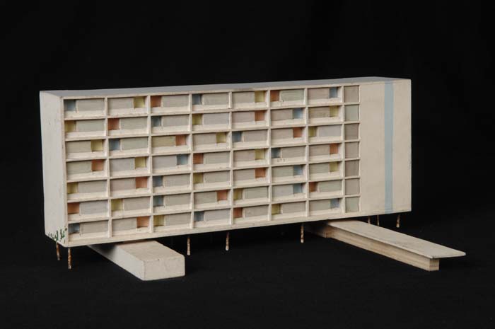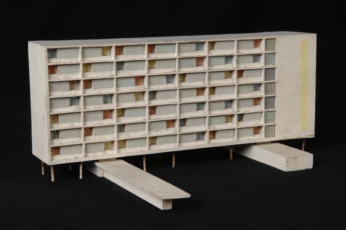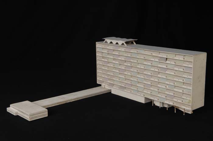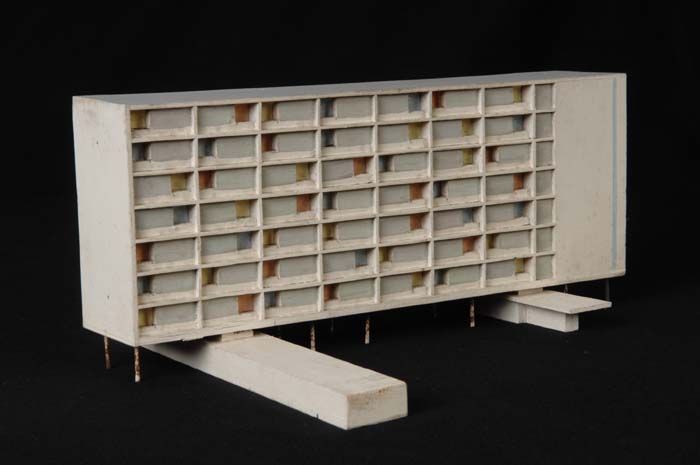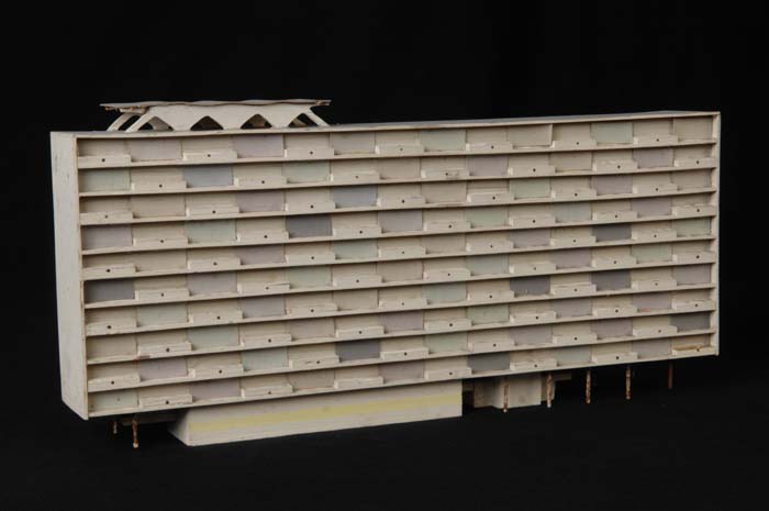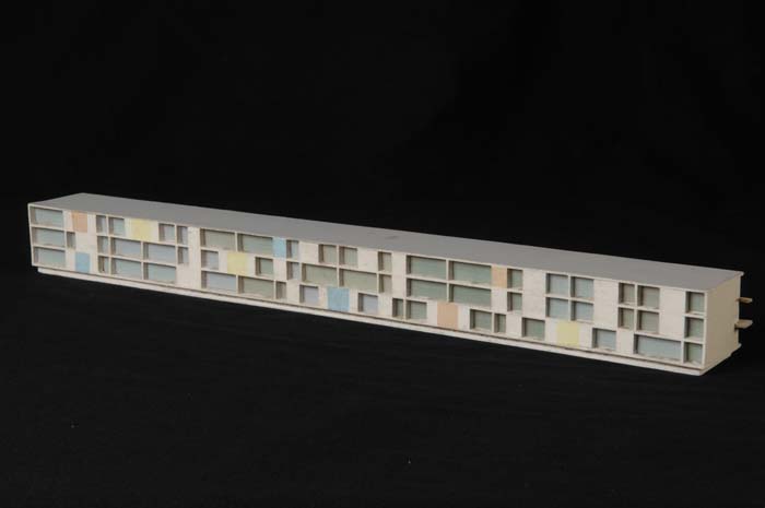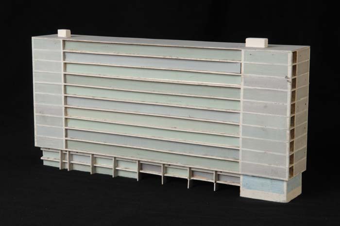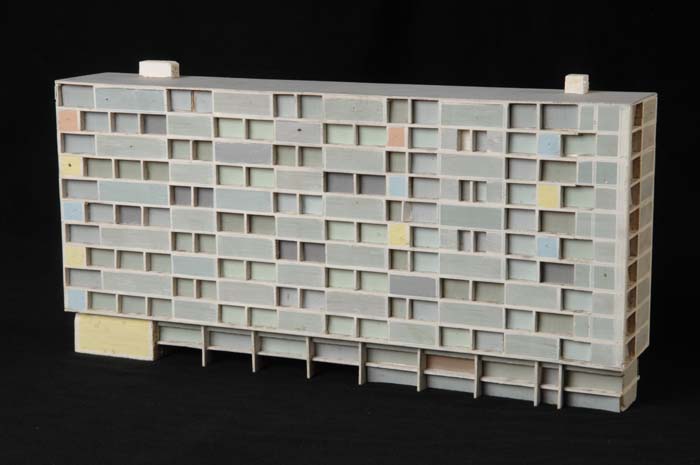 Maquette (1:200) van een flatgebouw, onderdeel van "...