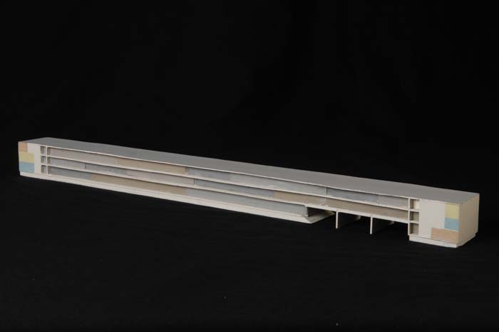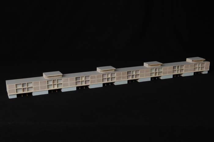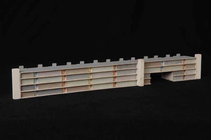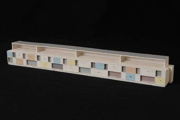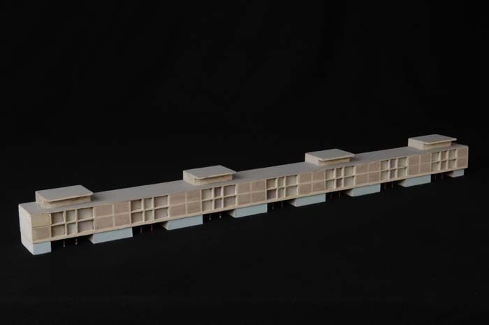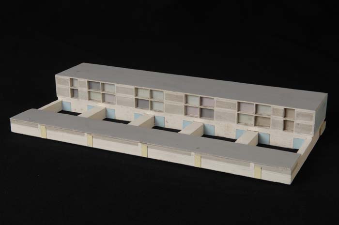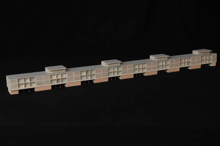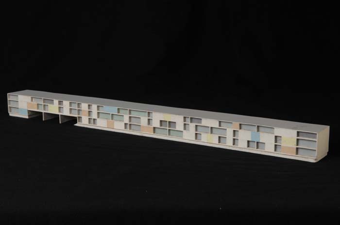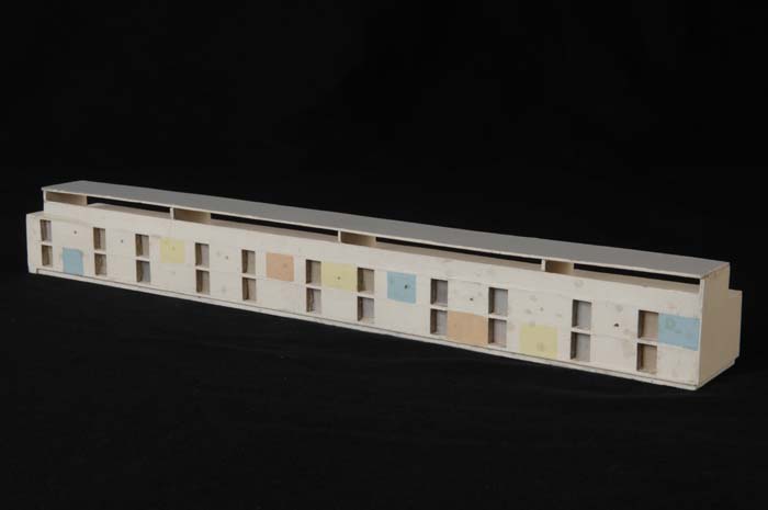 Maquette (1:200) van een galerijflat van vier verdie...