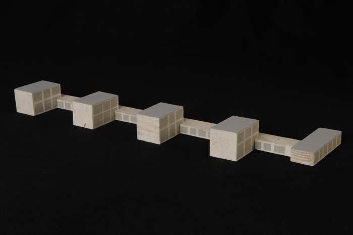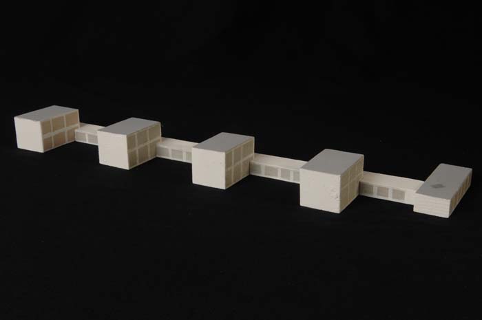 Maquette (1:200) van een vijf met elkaar verbonden g...