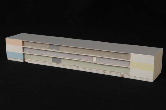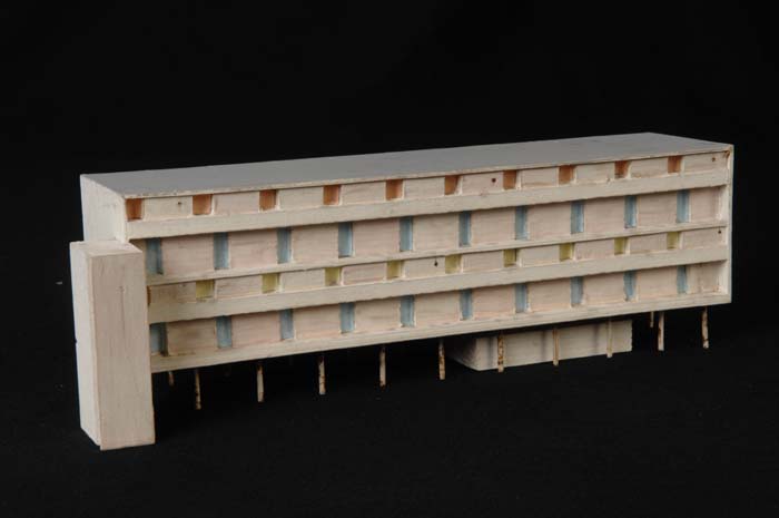 Maquette (1:200) van een flat van drie verdiepingen,...