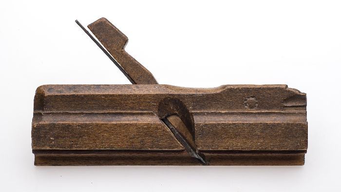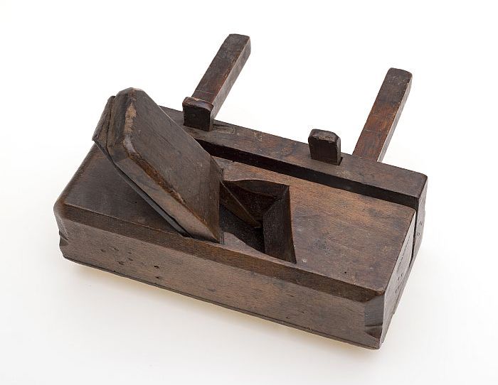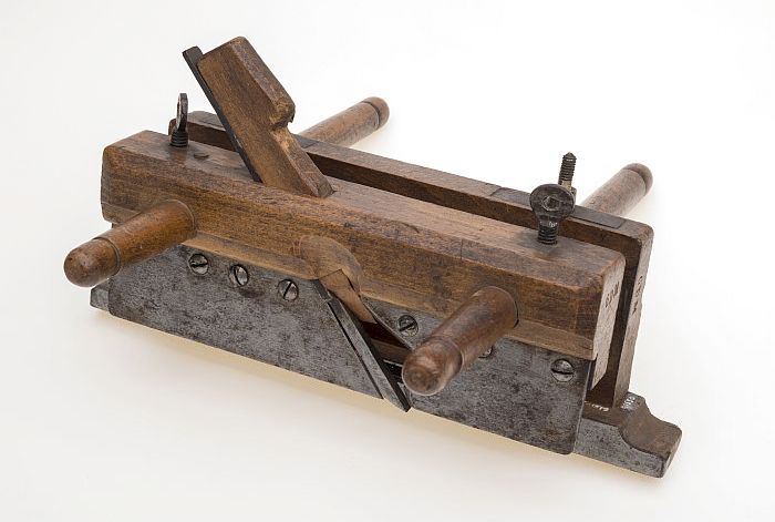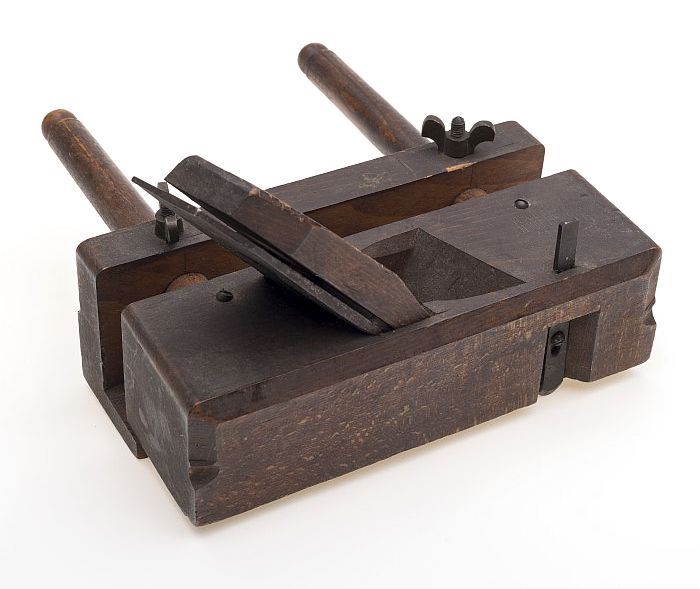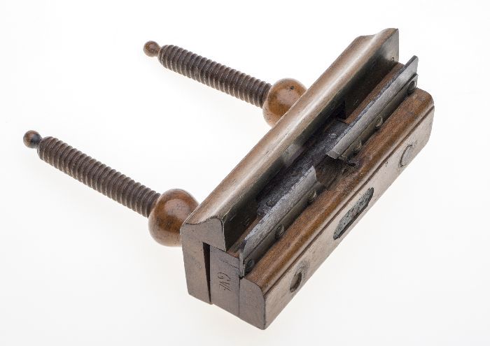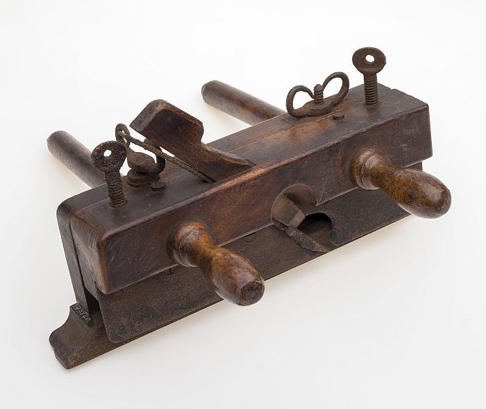Houten ploegschaaf met ronde schroefdraadstokken en ...