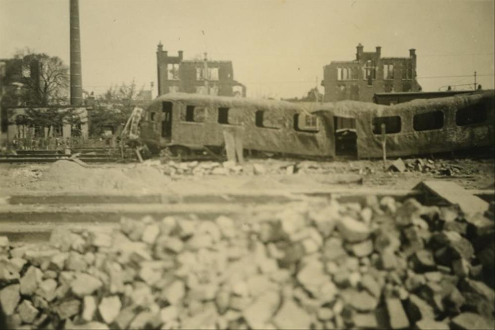 uitgebrand Nederlands treinstel voor fabriek