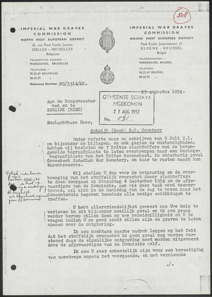 Brief van de Impereal War Graves Commission