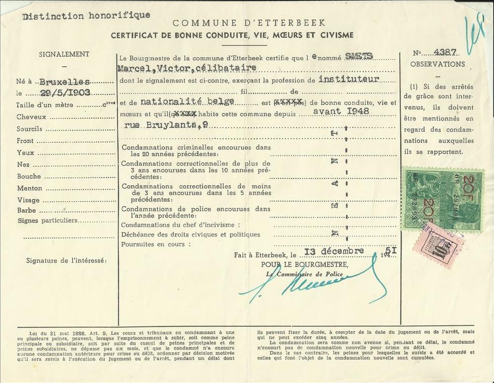 Certificat de Bonne Conduite, Vie, Moeurs et Civisme...
