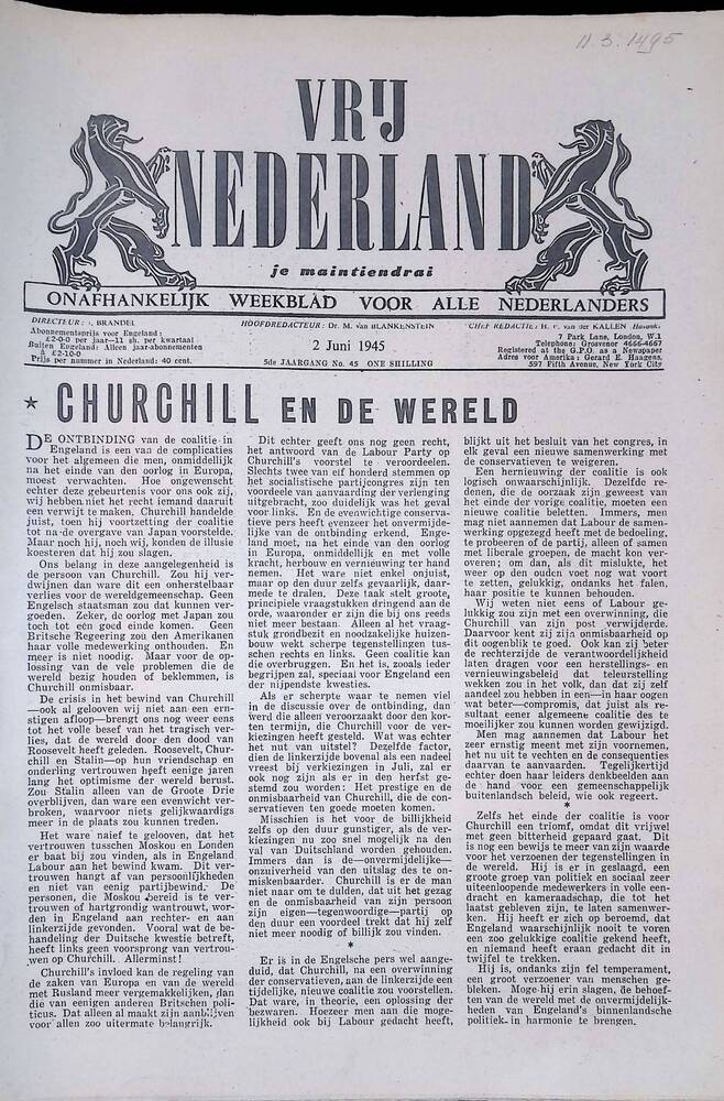 Vrij Nederland, gedrukt te Londen, 2 juni 1945