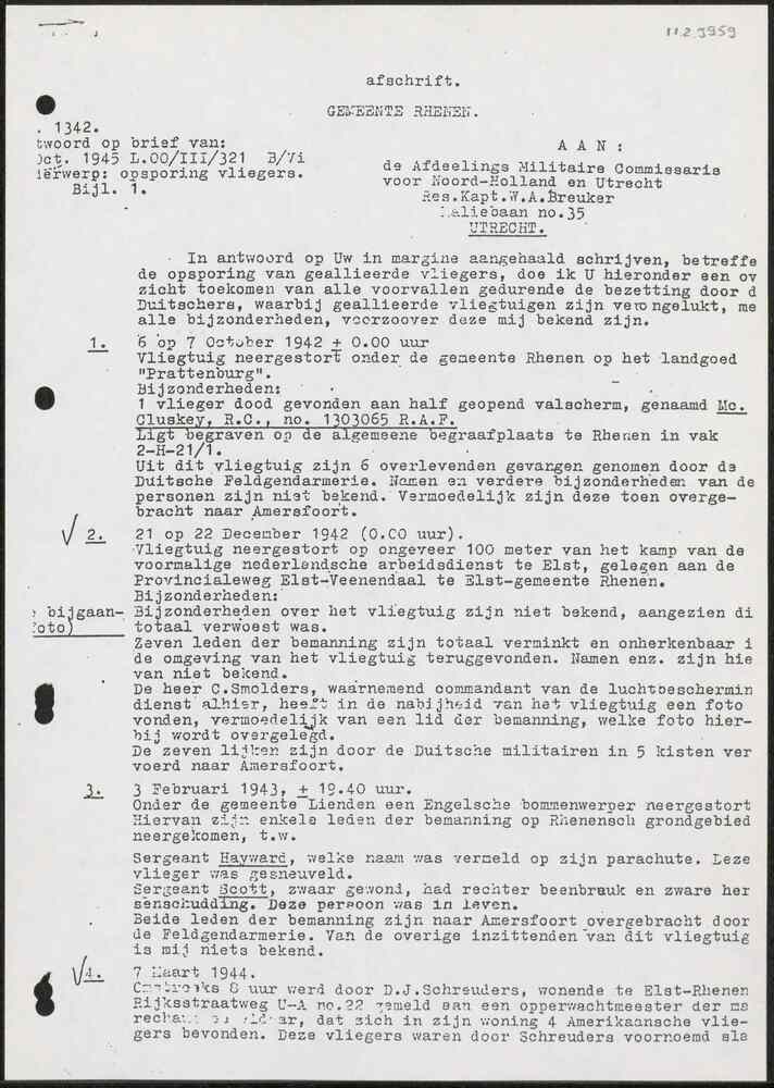 Rapport, Opsporing vliegers, burgemeester gemeente R...