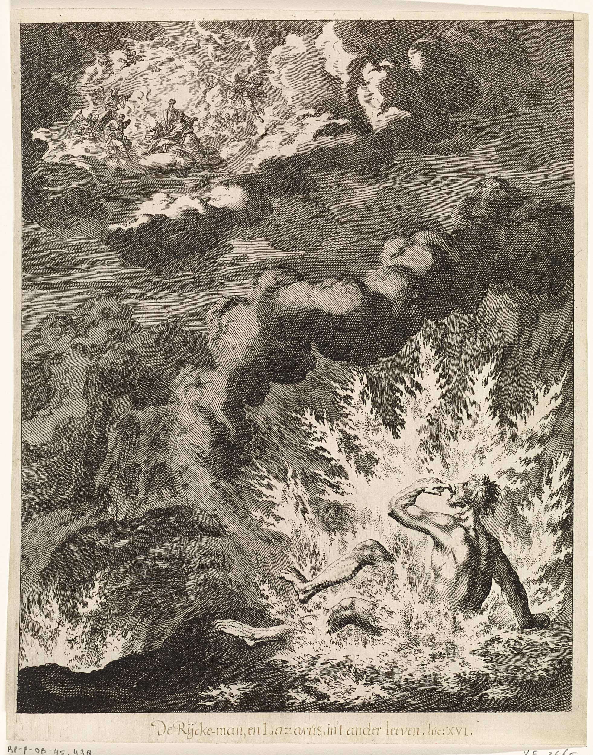Rijke man in de hel en Lazarus in de hemel bij Abraham