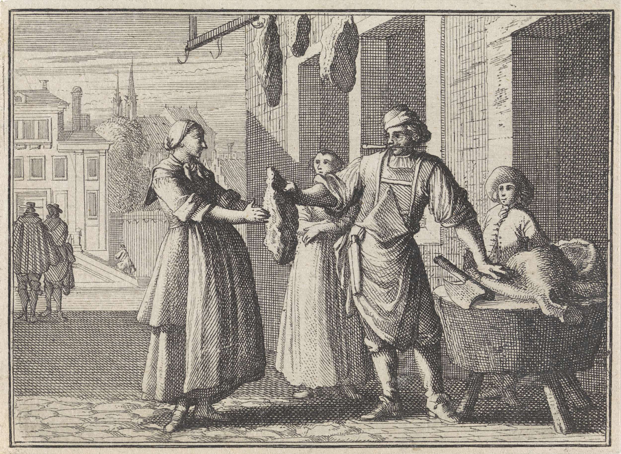 Zwangere vrouw ontvangt een stuk ossenvlees