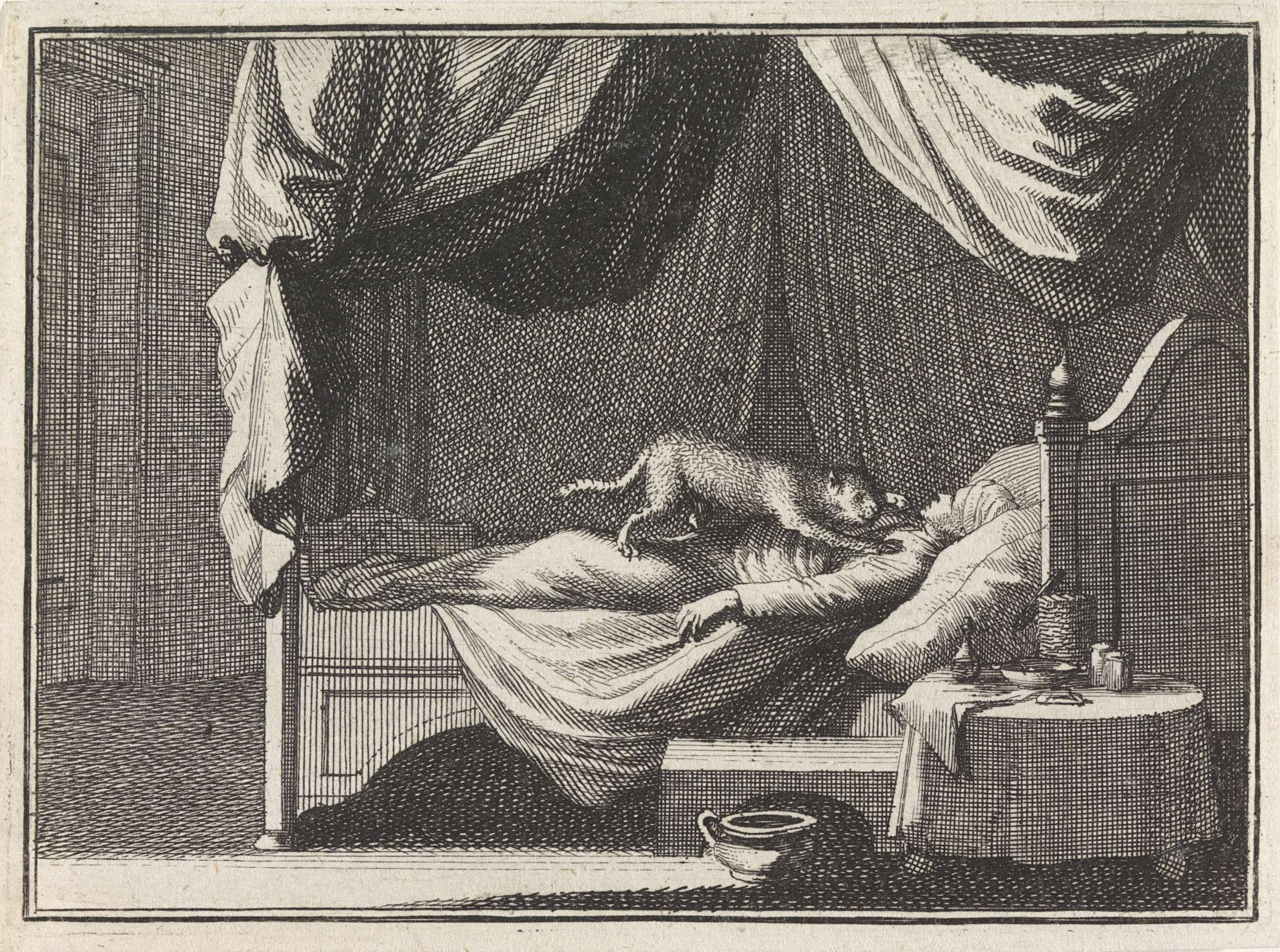 Slapende ketter wordt aangevallen door een kat