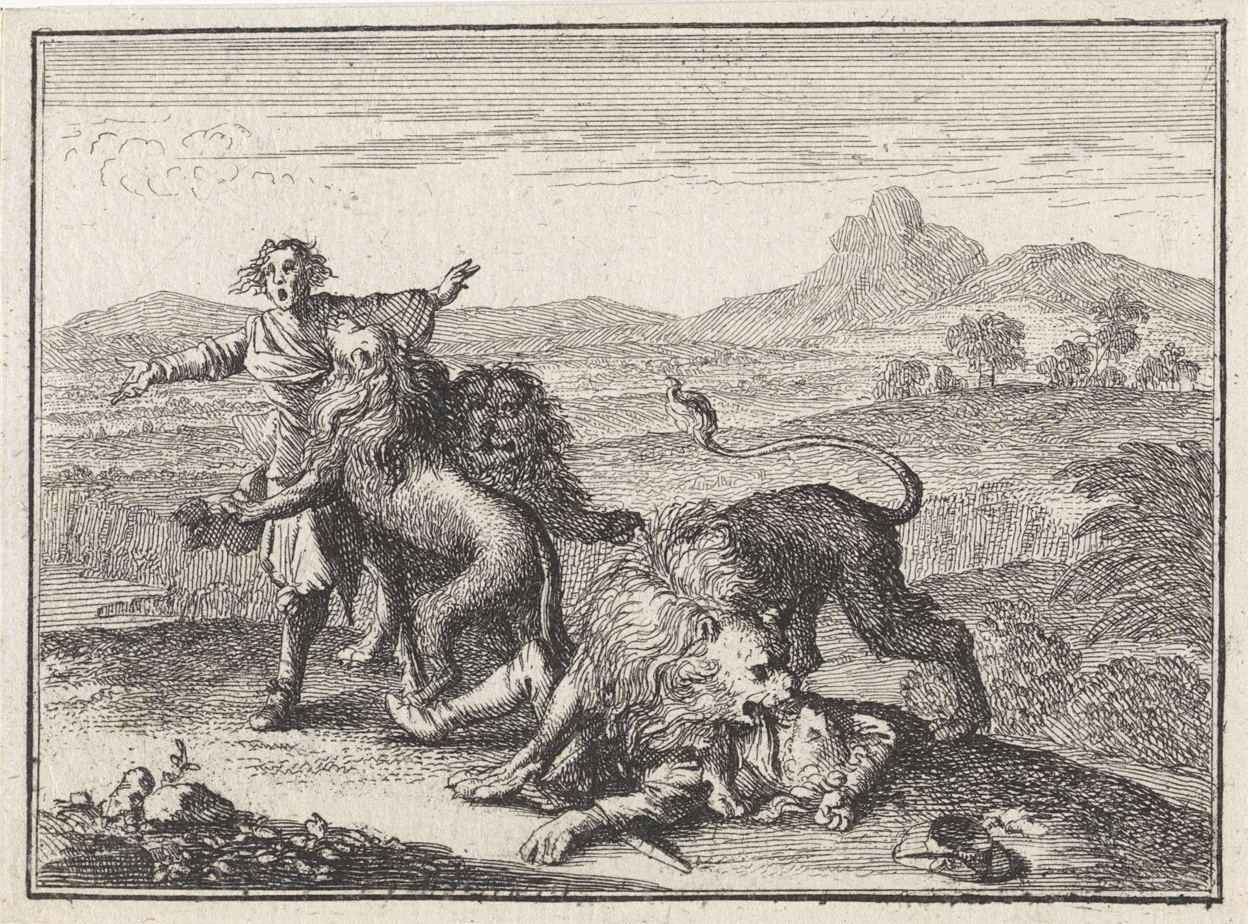 Twee Abyssinische edelen worden door leeuwen versche...