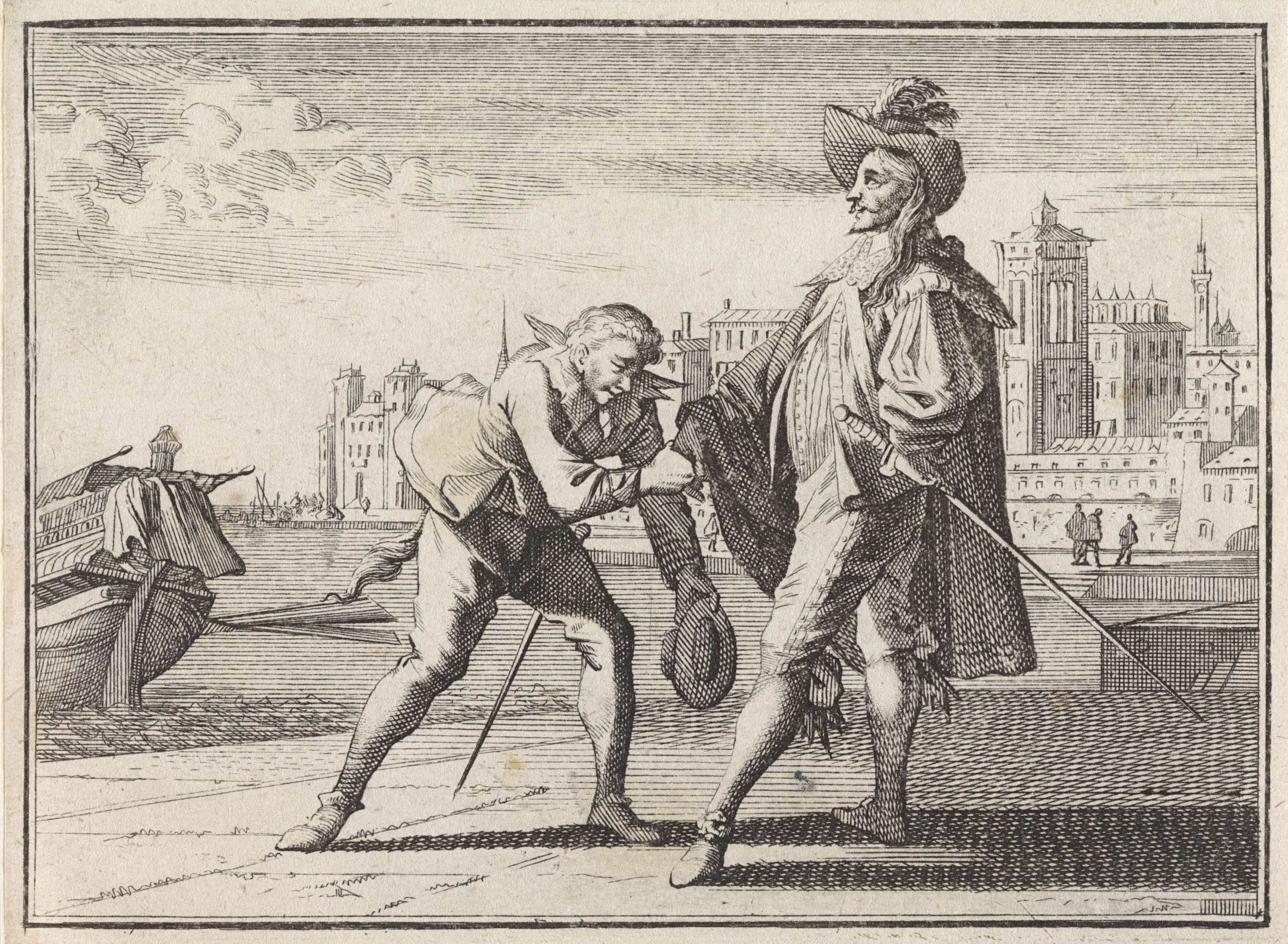 Man kust de hand van een edelman op een kade