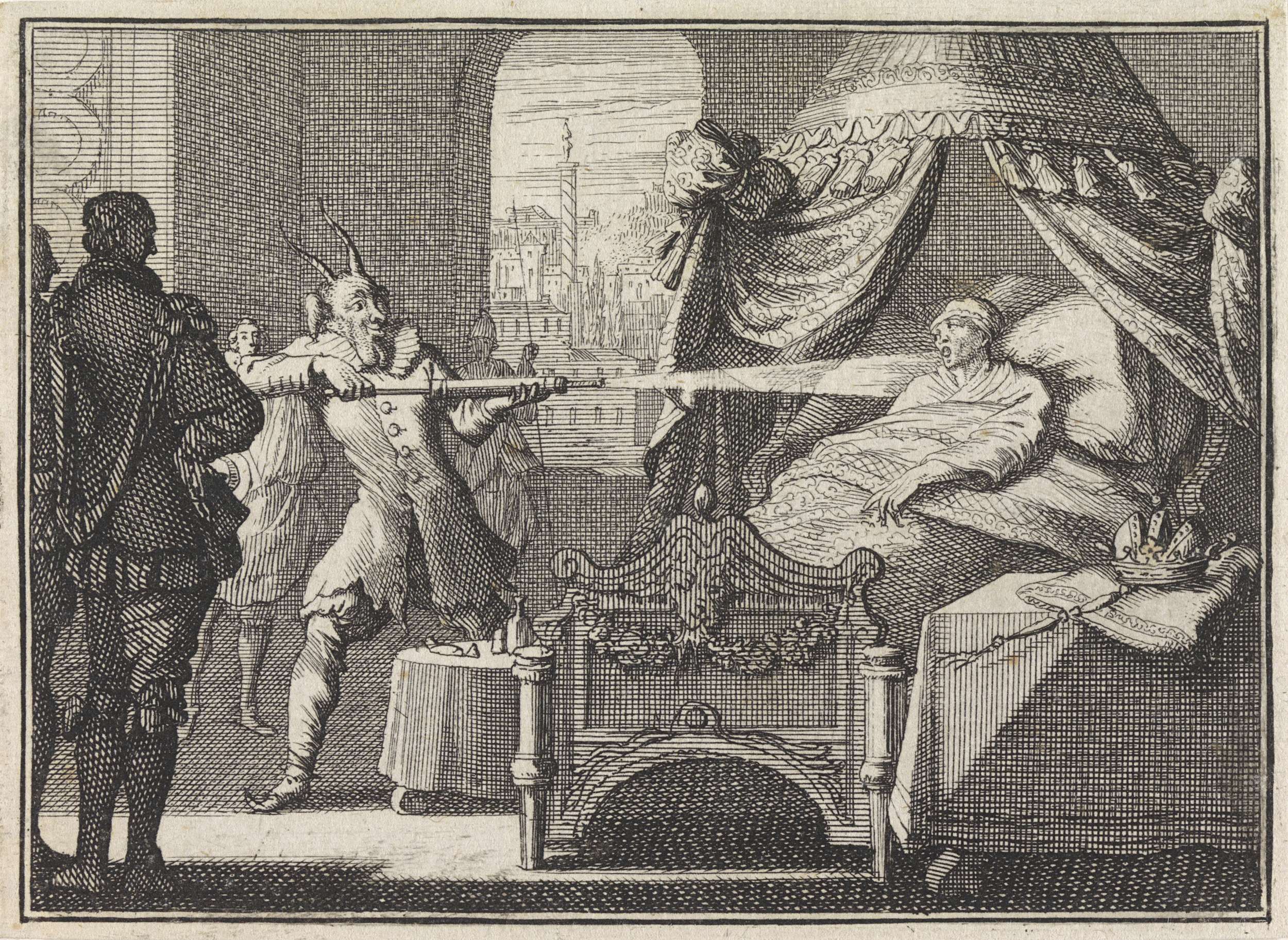 Duivel stelt aan een gierige edelman voor om zijn ka...