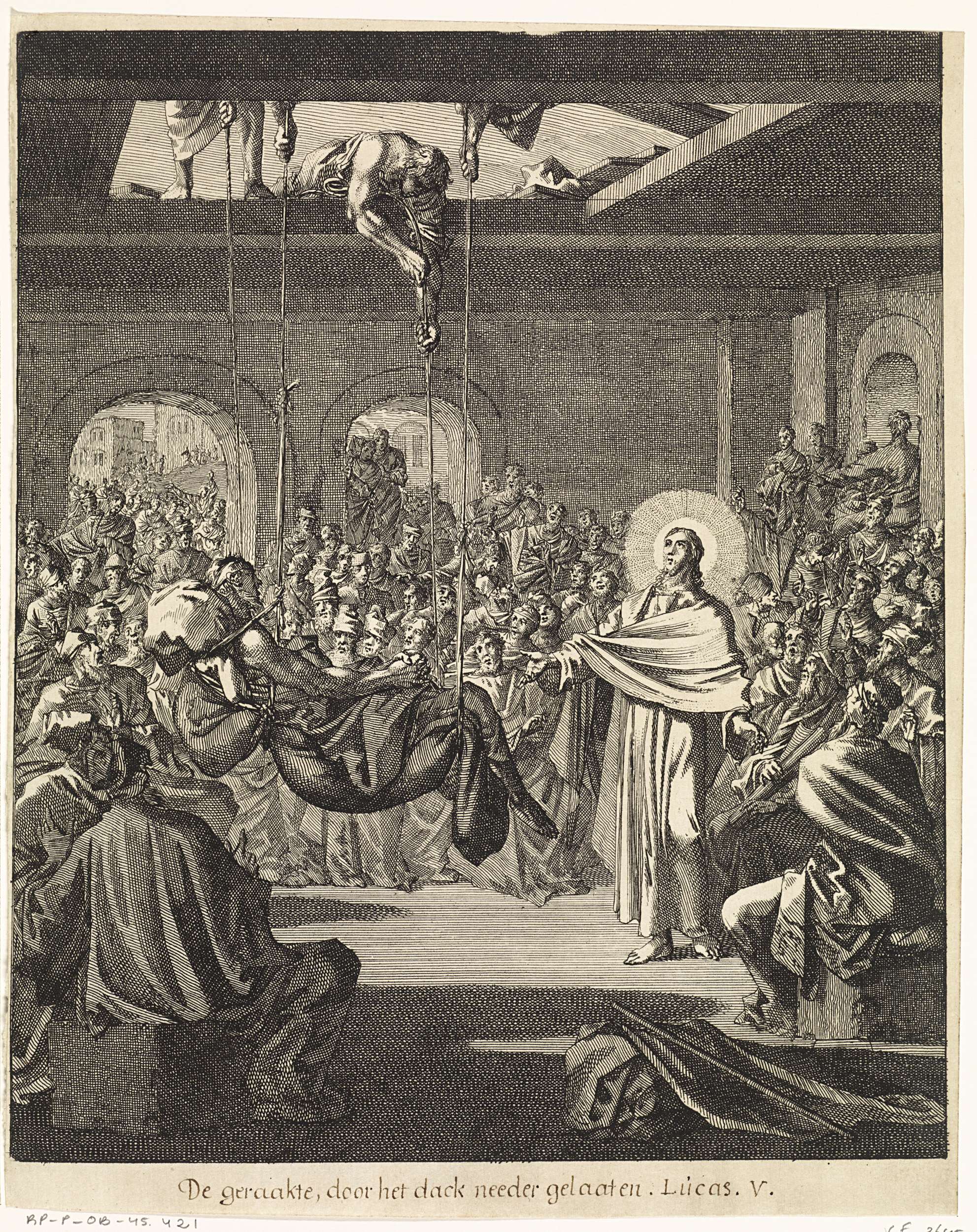 Christus geneest een verlamde man die door het dak w...