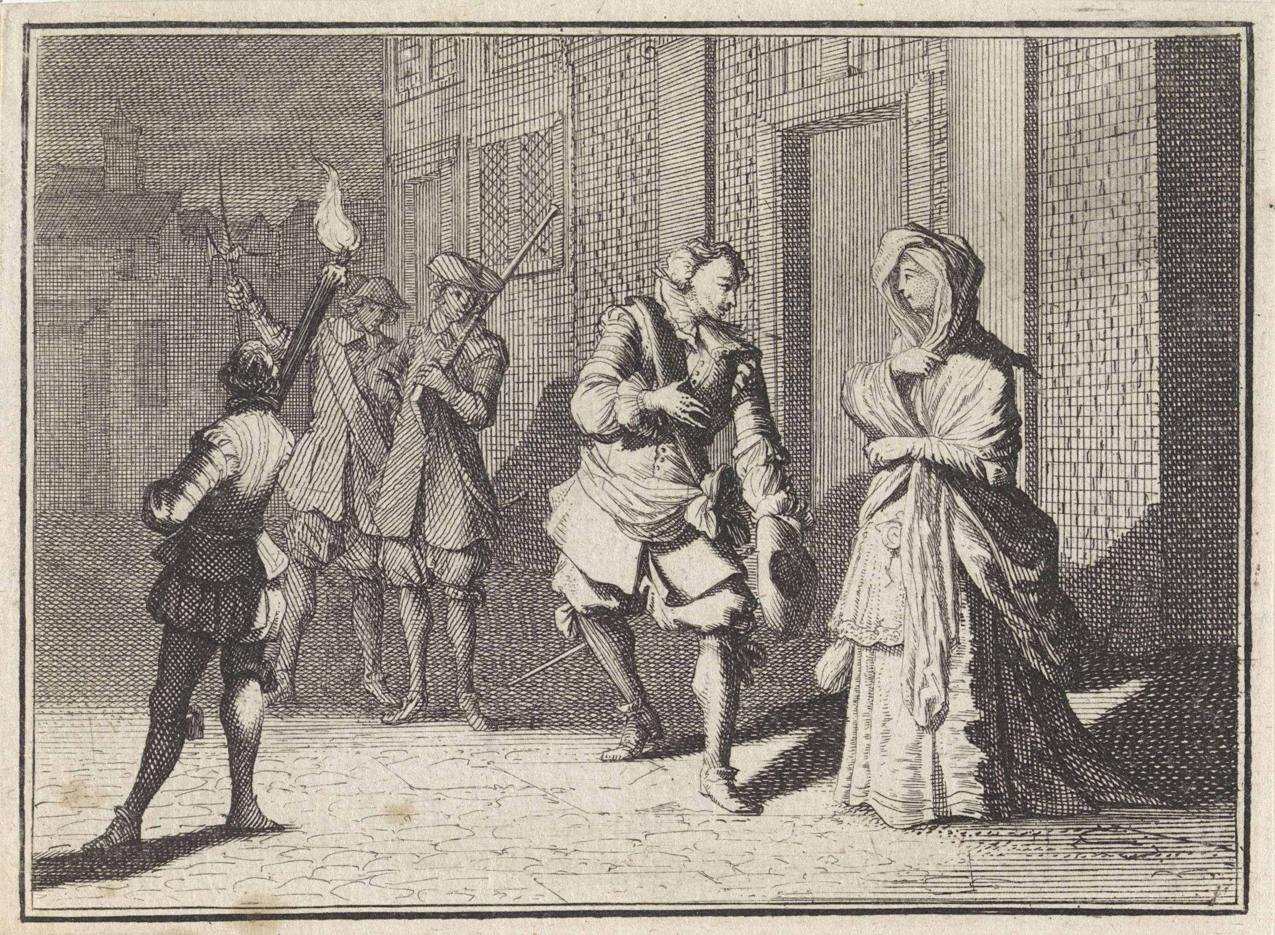 Vrouw treft haar minnaar op straat bij nacht