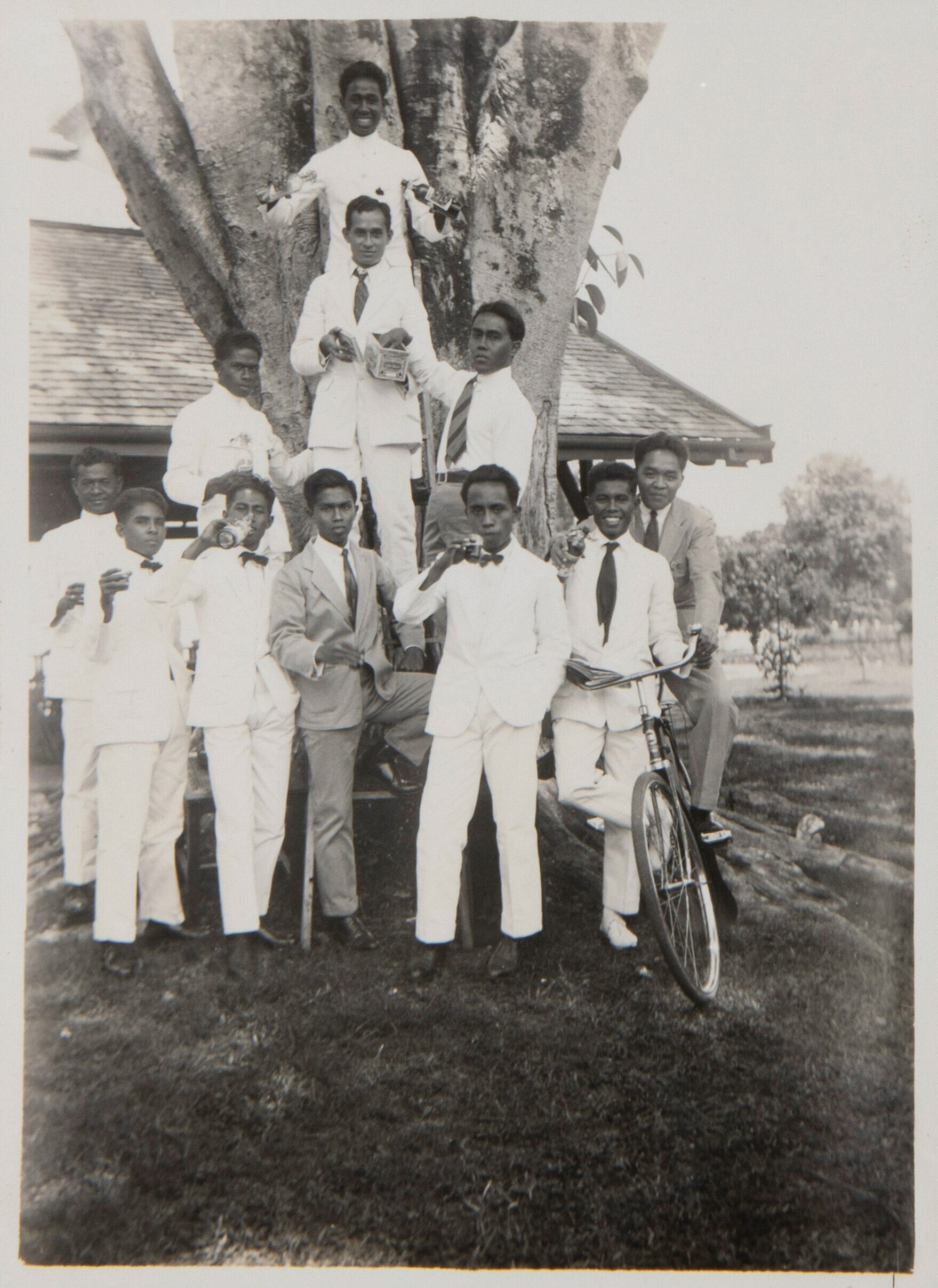 Portrait of students under a tree beside the 'Hogere...